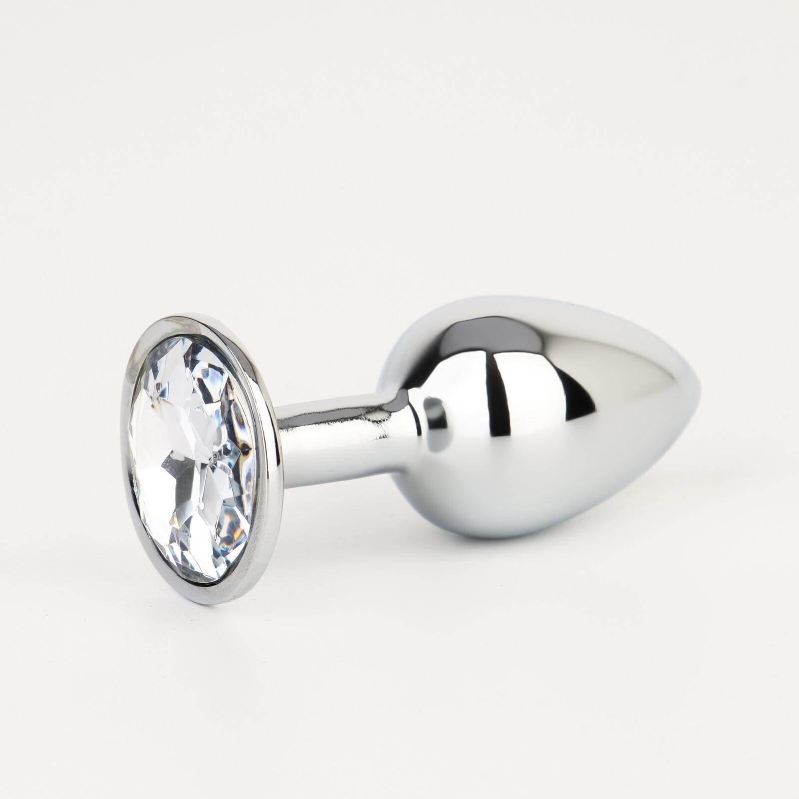 Анальная пробка из металла, 7см/2.8см, с кристаллом, серебристая