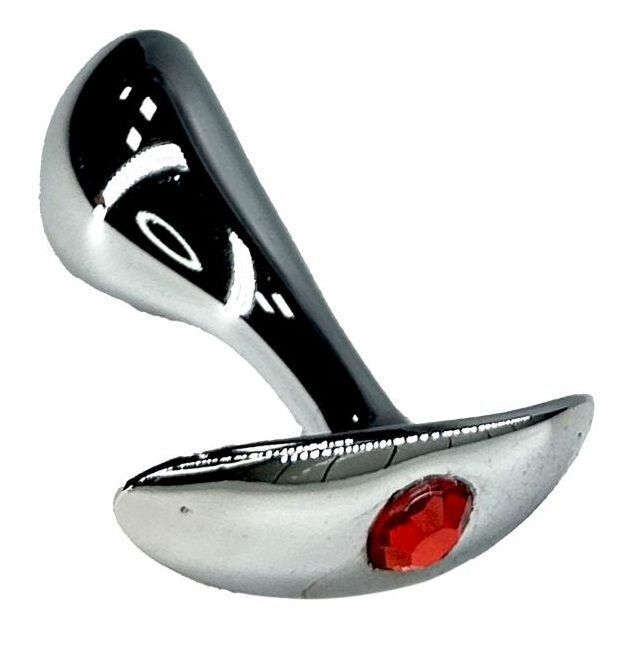Серебристая анальная пробка с красным кристаллом