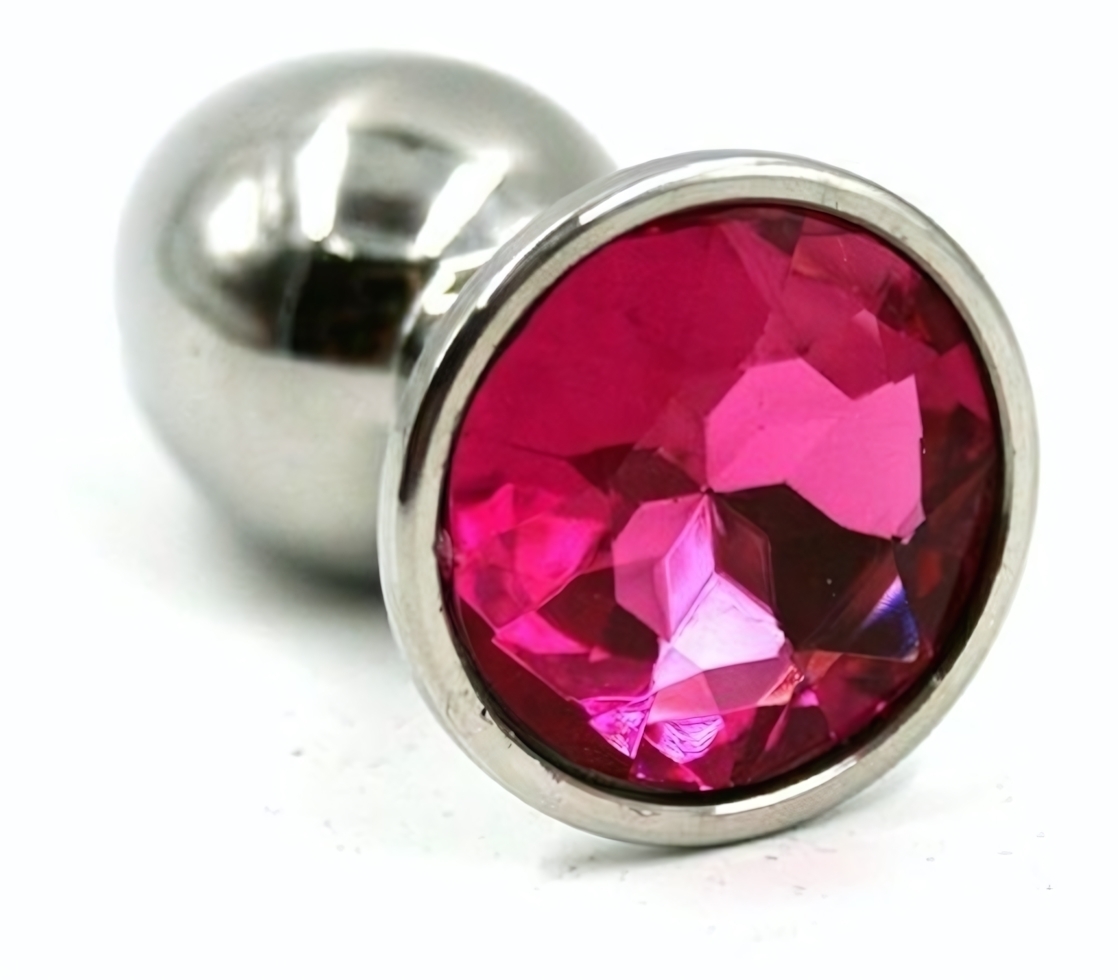 Анальная пробка с кристаллом, металл, 7 см, розовый страз, ручная работа, серебристый