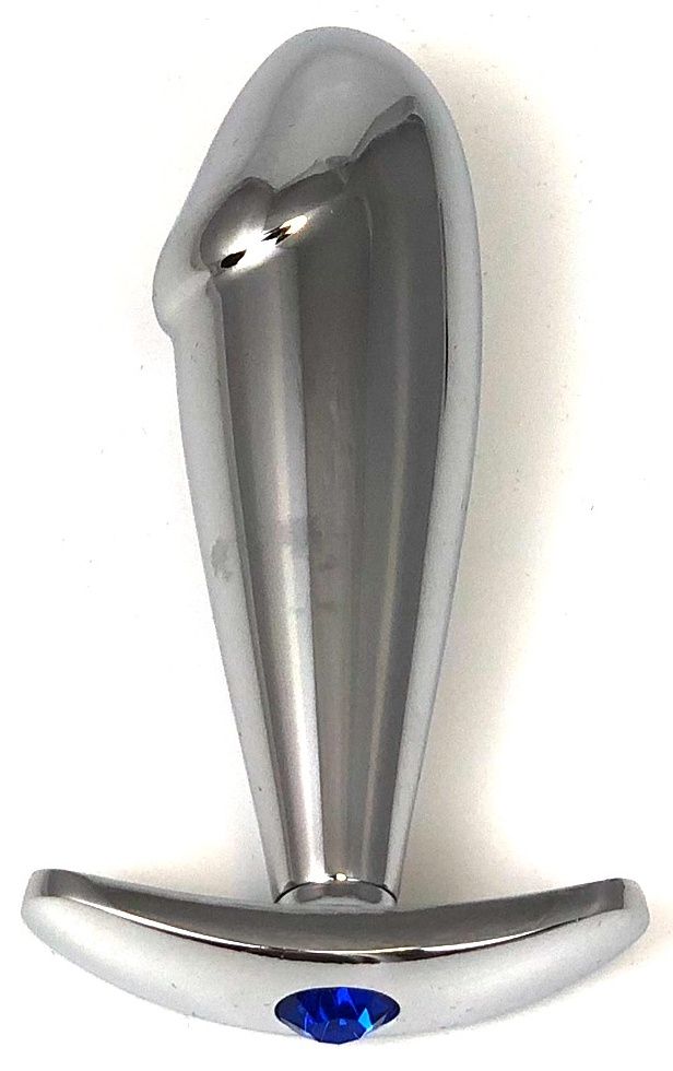 Металлическая анальная пробка с синим кристаллом для новых ощущений