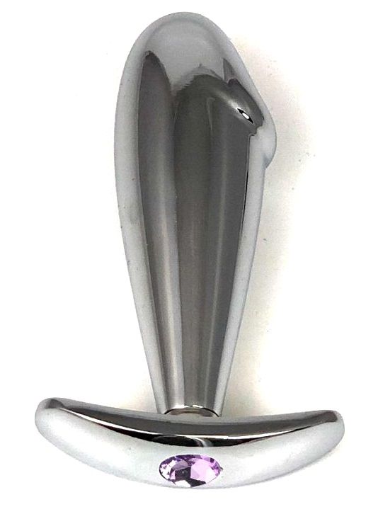 Металлическая анальная пробка с сиреневым кристаллом для новых ощущений