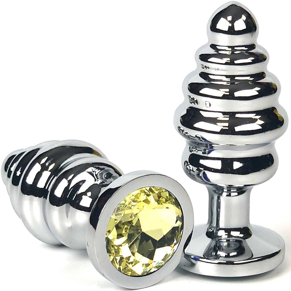 Металлическая анальная пробка с ребристой поверхностью и элегантным желтым кристаллом — это стильный аксессуар для разнообразия интимной жизни. Идеально сглаженная форма и продуманная конструкция обеспечивают максимальный комфорт и безопасность во время использования.