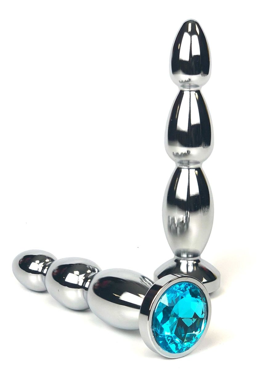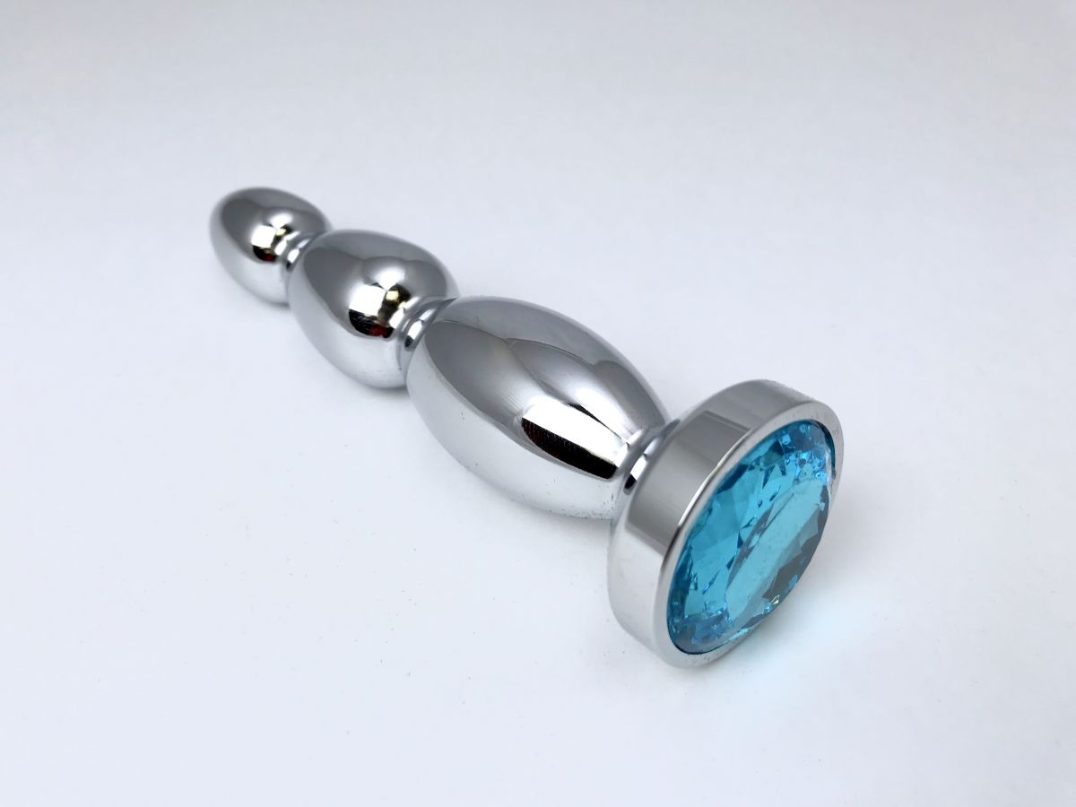 Удлиненная рельефная форма этой серебристой пробки создана для глубокой и интенсивной стимуляции. Идеально подходит как для подготовки к анальному половому акту, так и для самостоятельного исследования новых граней удовольствия. Гладкая металлическая поверхность обеспечивает комфортное скольжение, а роскошный голубой кристалл в основании добавляет эстетики и изысканности.