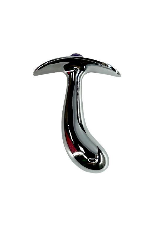 Длина пробки составляет 8 см, а диаметр — 2.1 см, что делает её подходящей для большинства пользователей. Цвет — серебристый с фиолетовым кристаллом, что придаёт ей стильный и современный вид. Пробка упакована в черный вельветовый мешочек, что делает её удобной для хранения и транспортировки.