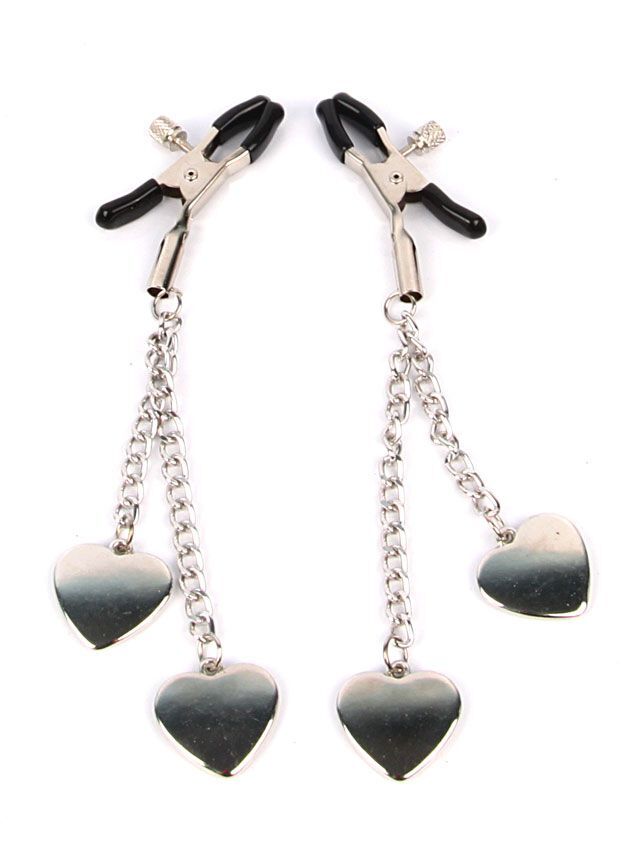 Зажимы на соски с сердечками, регулировка силы, металл, черно-серебристый
