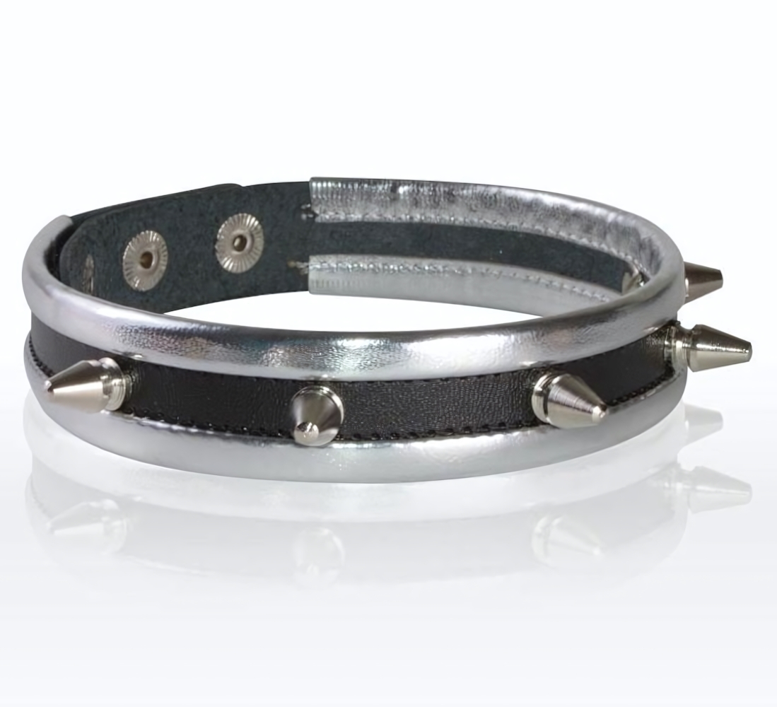 - Натуральная кожа с металлическими шипами — долговечность и эффектный контраст