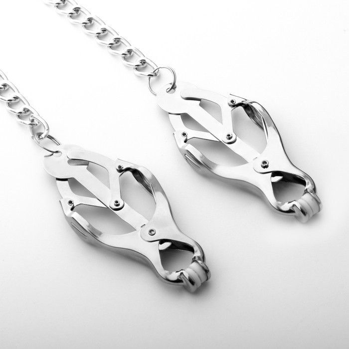 Цвет: серебристый; Материал: металл. Эти зажимы для сосков с цепочкой станут отличным дополнением к вашей коллекции интимных аксессуаров и помогут вам раскрыть новые грани удовольствия.