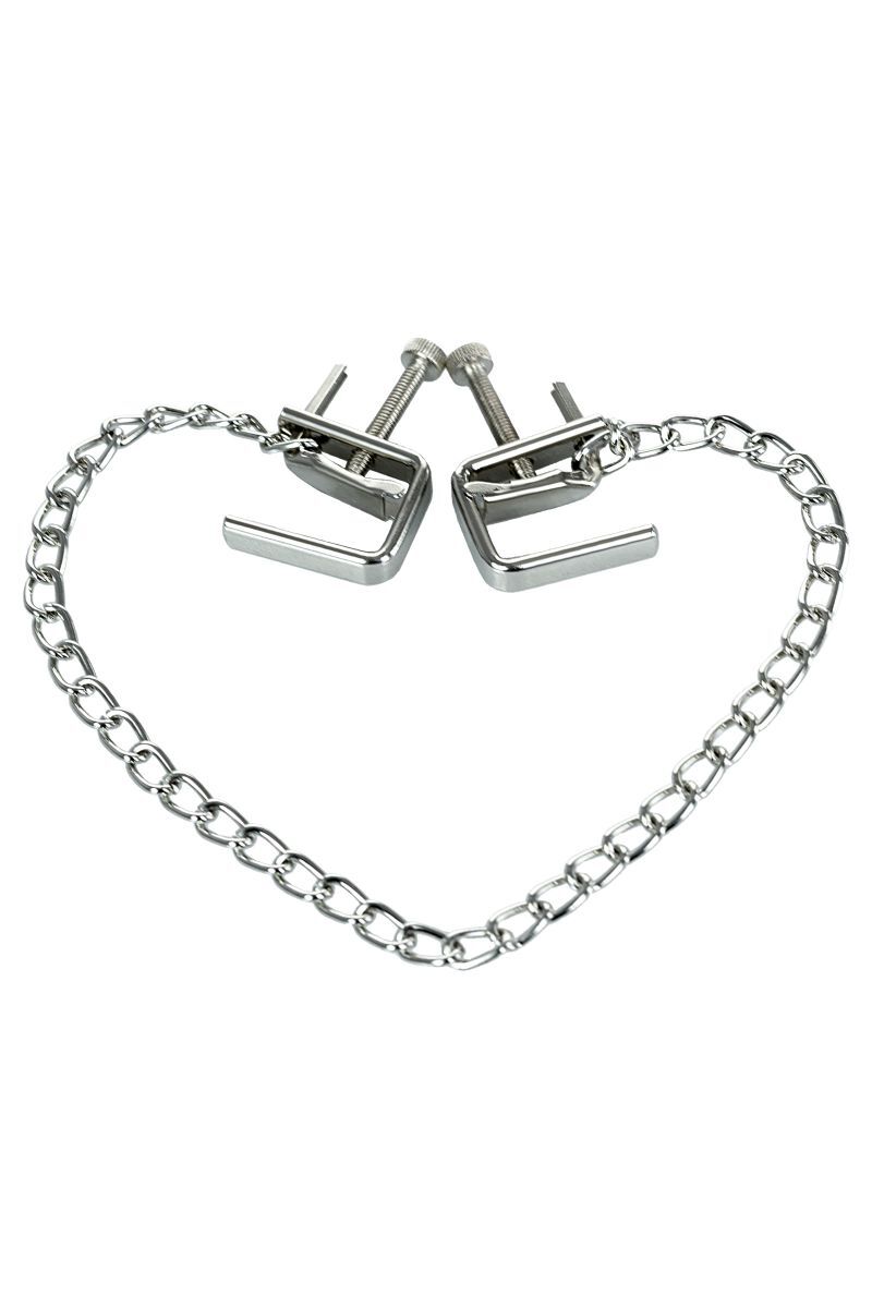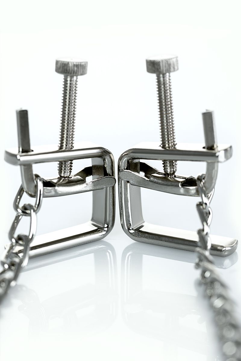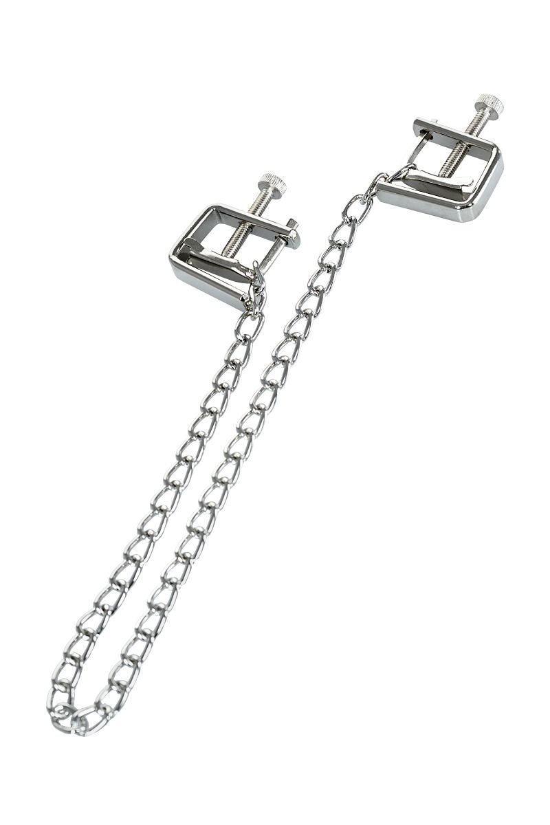 Зажимы просты в использовании — регулируемый болтик позволяет мягко или усиленно зажать соски. Металлические цепочки длиной около 15-20 см создают дополнительные эстетические и тактильные ощущения, что делает изделие универсальным и практичным. Надежный механизм гарантирует безопасность и комфорт при использовании, а износостойкий металл — длительный срок службы.