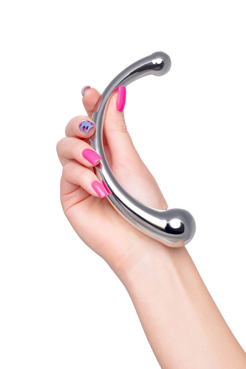 Серебристый двусторонний металлический дилдо - 21 см. (Цвет: серебристый)