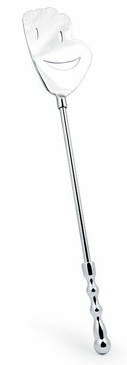 Погрузитесь в мир оригинальных эротических развлечений с этим великолепным БДСМ-аксессуаром. Серебристый металлический стек длиной 43 см с уникальной формой рабочей поверхности в виде ладони-смайлика станет идеальным дополнением к вашим интимным играм. Он не только добавит элемент неожиданности, но и поможет разогреть страсть перед близостью.
