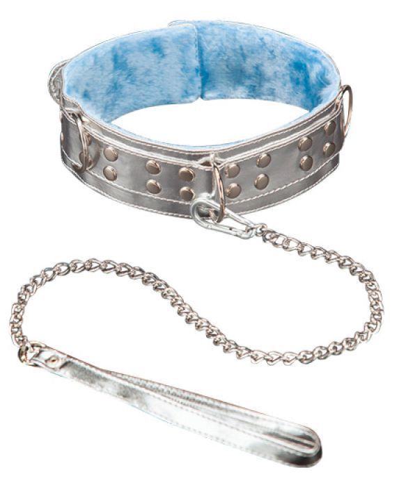 Ошейник BDSM Sitabella из искусственной кожи, серебристый, мягкая подкладка, цепочка с карабином