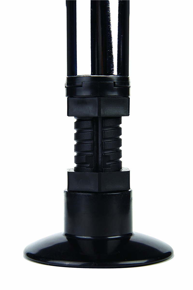 Конструкция из трёх металлических труб диаметром 5 см соединяется пластиковыми втулками. Верхний упор фиксируется саморезами (входят в комплект), нижняя опора регулируется по высоте. Вес конструкции оптимален для устойчивости и мобильности.