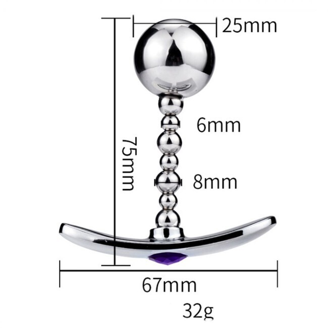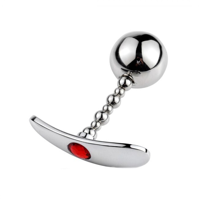 Ступенчатая форма с постепенным увеличением диаметра обеспечивает комфортное введение. Зеркальная полировка поверхности предотвращает травмирование, а цепочка из шариков создает дополнительную стимуляцию. Красный кристалл на основании добавляет эстетической привлекательности.