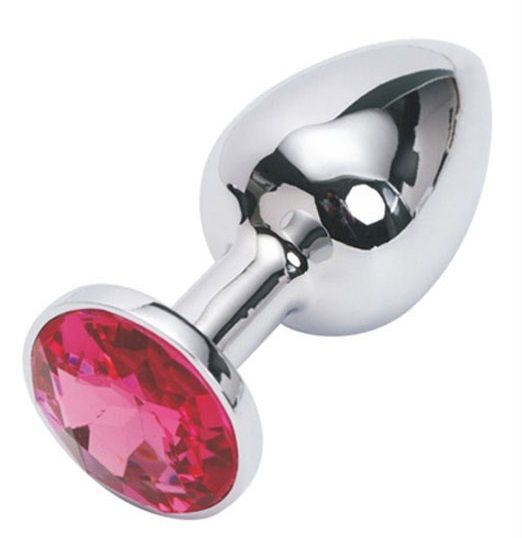 Анальная пробка металлическая с красным стразом, 7,6 см, для стимуляции и эстетики