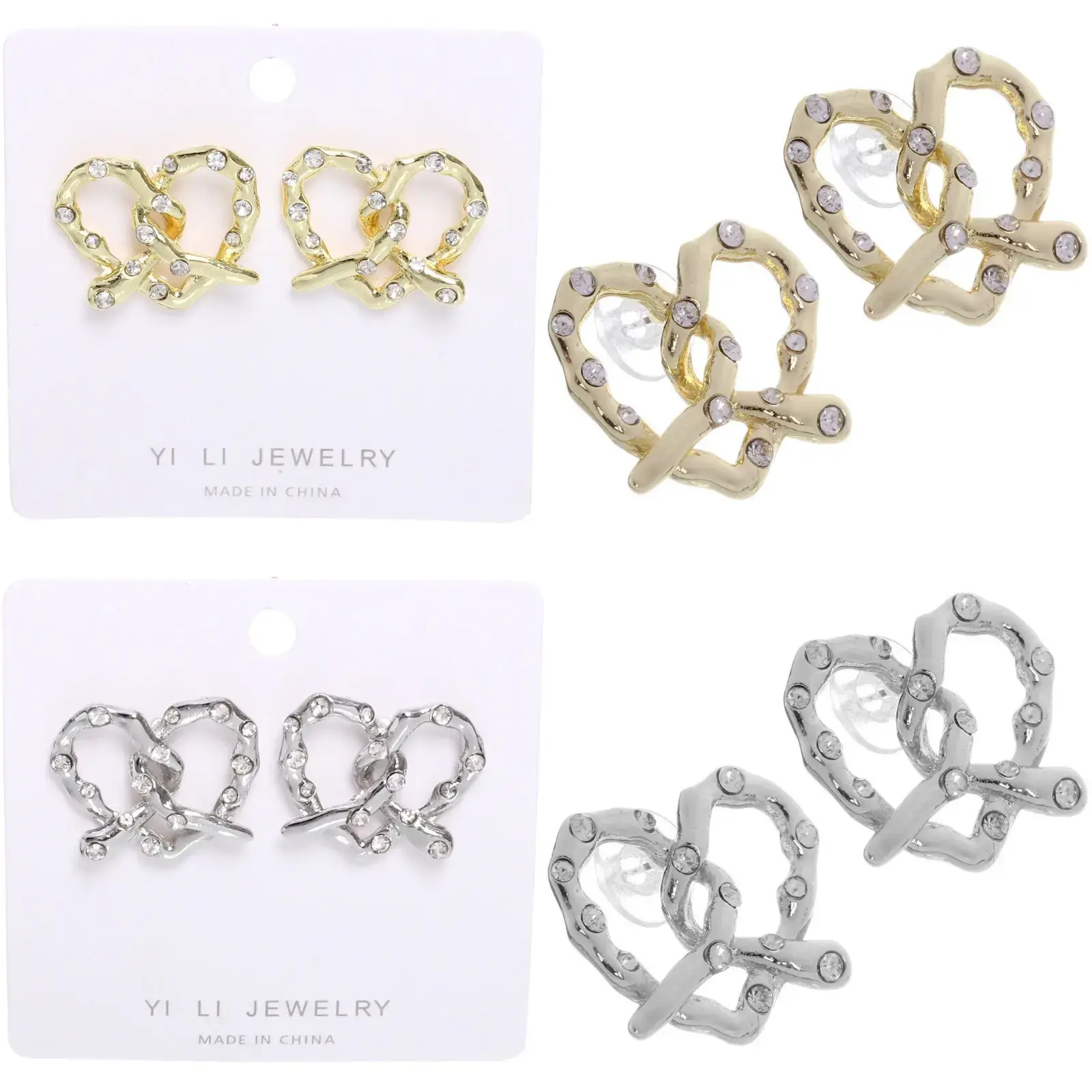 Эти серьги в форме переплетенных сердечек станут идеальным дополнением к вашему образу, придавая ему изысканность и шарм. Изготовленные из качественного металла, они доступны в двух цветах: золотом и серебристом, что позволяет легко сочетать их с различными нарядами. Серьги украшены прозрачными стразами, которые добавляют блеска и делают их особенно привлекательными.