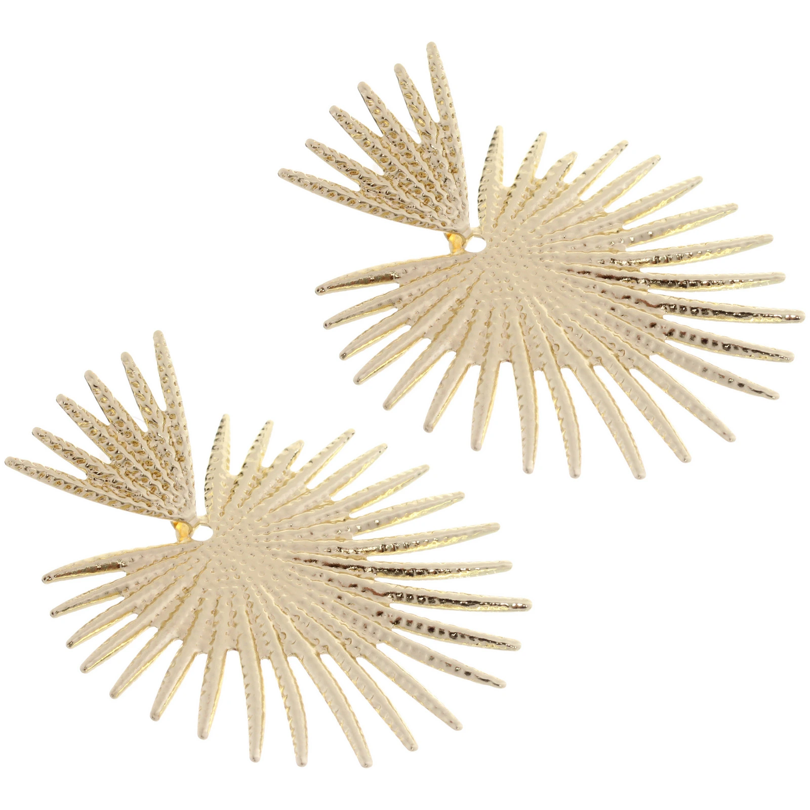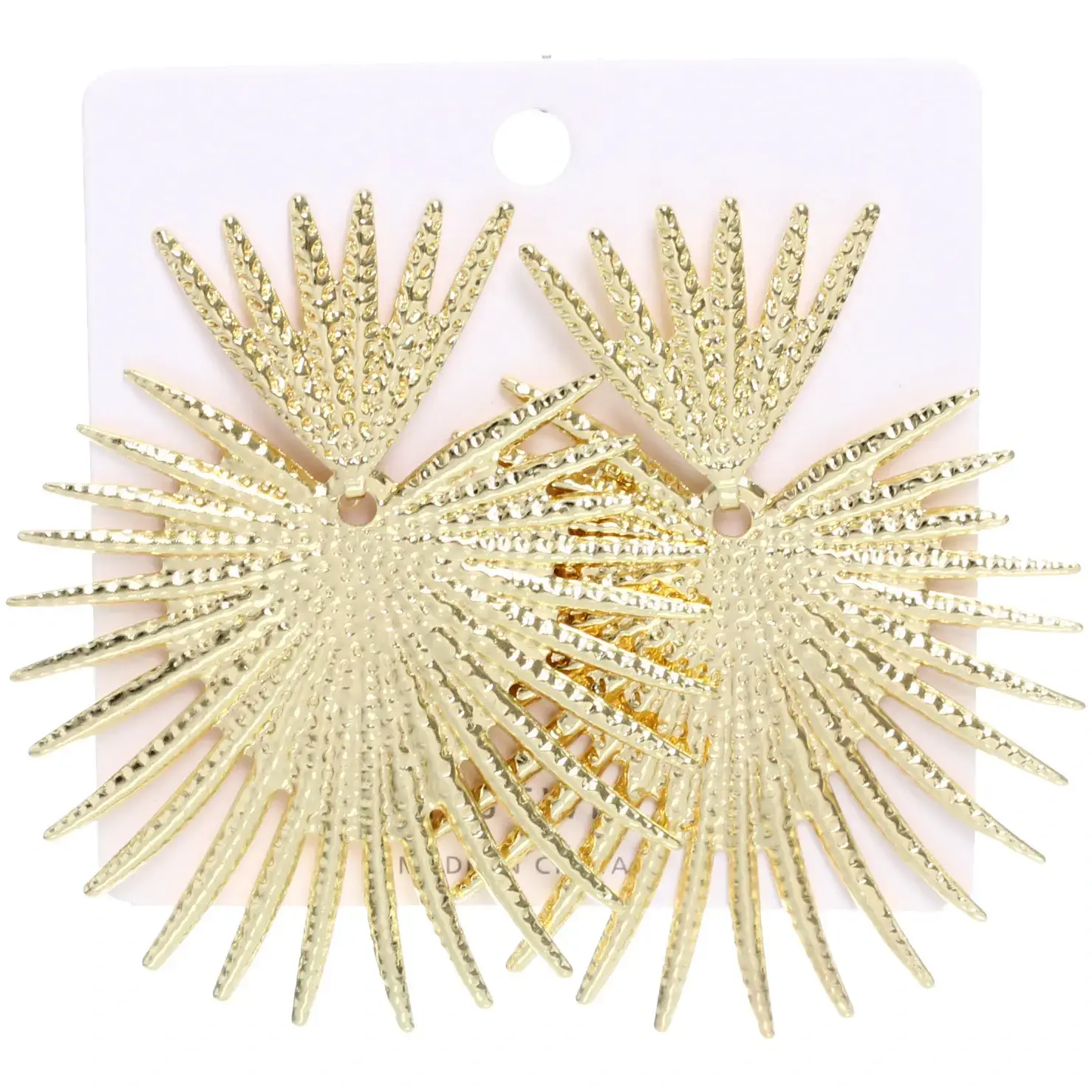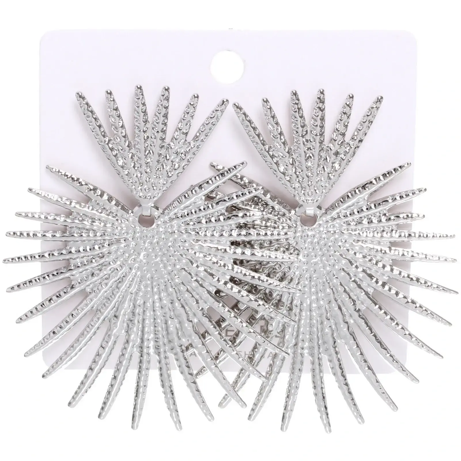Размеры серьг составляют 7х5,5 см, что делает их заметными, но не слишком громоздкими. Текстурированная поверхность добавляет интересный визуальный эффект, а форма, напоминающая солнечные лучи, создает ощущение легкости и свежести. Эти серьги — отличный выбор для тех, кто ценит стиль и качество.