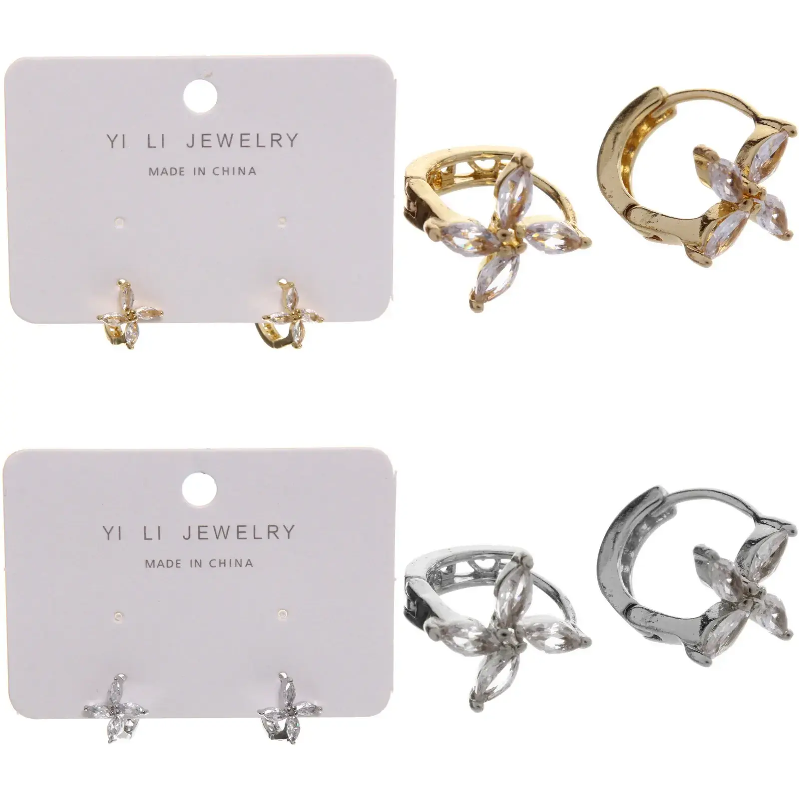 Серьги «ПАЛУМНА» — это идеальный выбор для тех, кто ценит стиль и комфорт. Эти серьги, выполненные из гипоаллергенного металла, обеспечивают надежность и долговечность, что делает их отличным дополнением к любому образу. Их уникальный дизайн в форме цветка с четырьмя лепестками, украшенными прозрачными стразами, придаёт им особую изысканность и блеск.