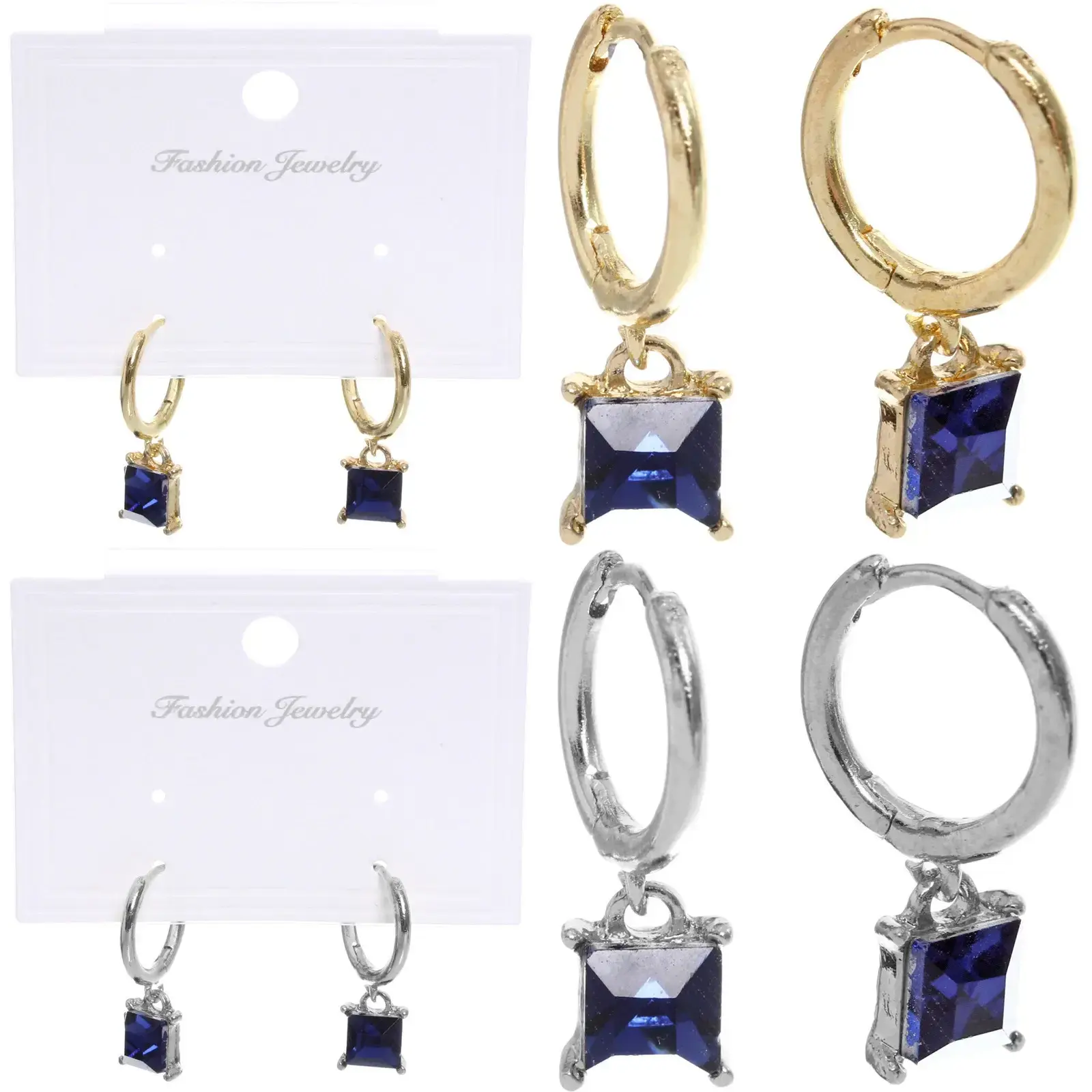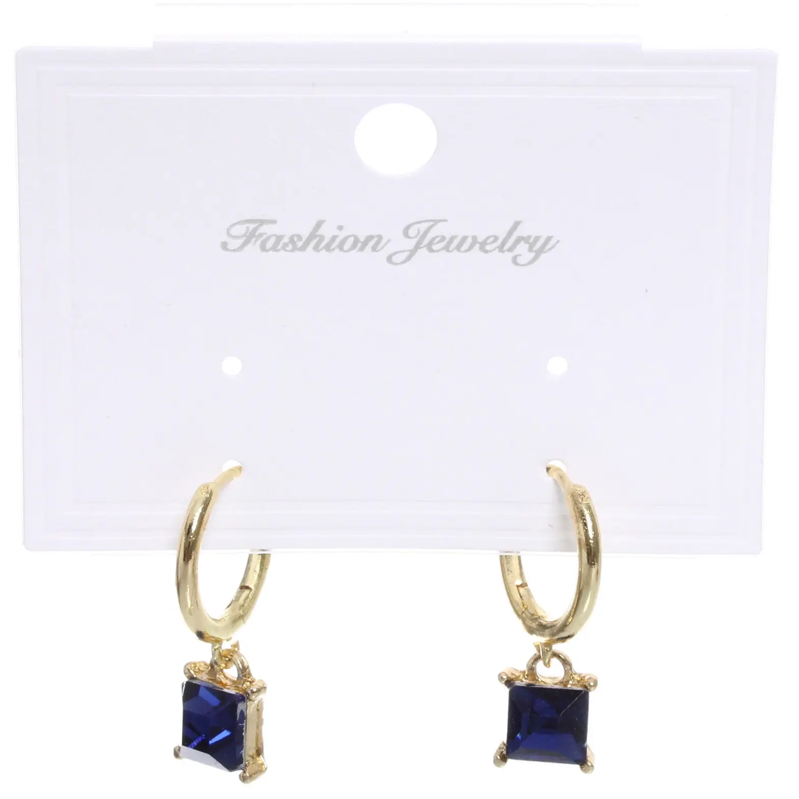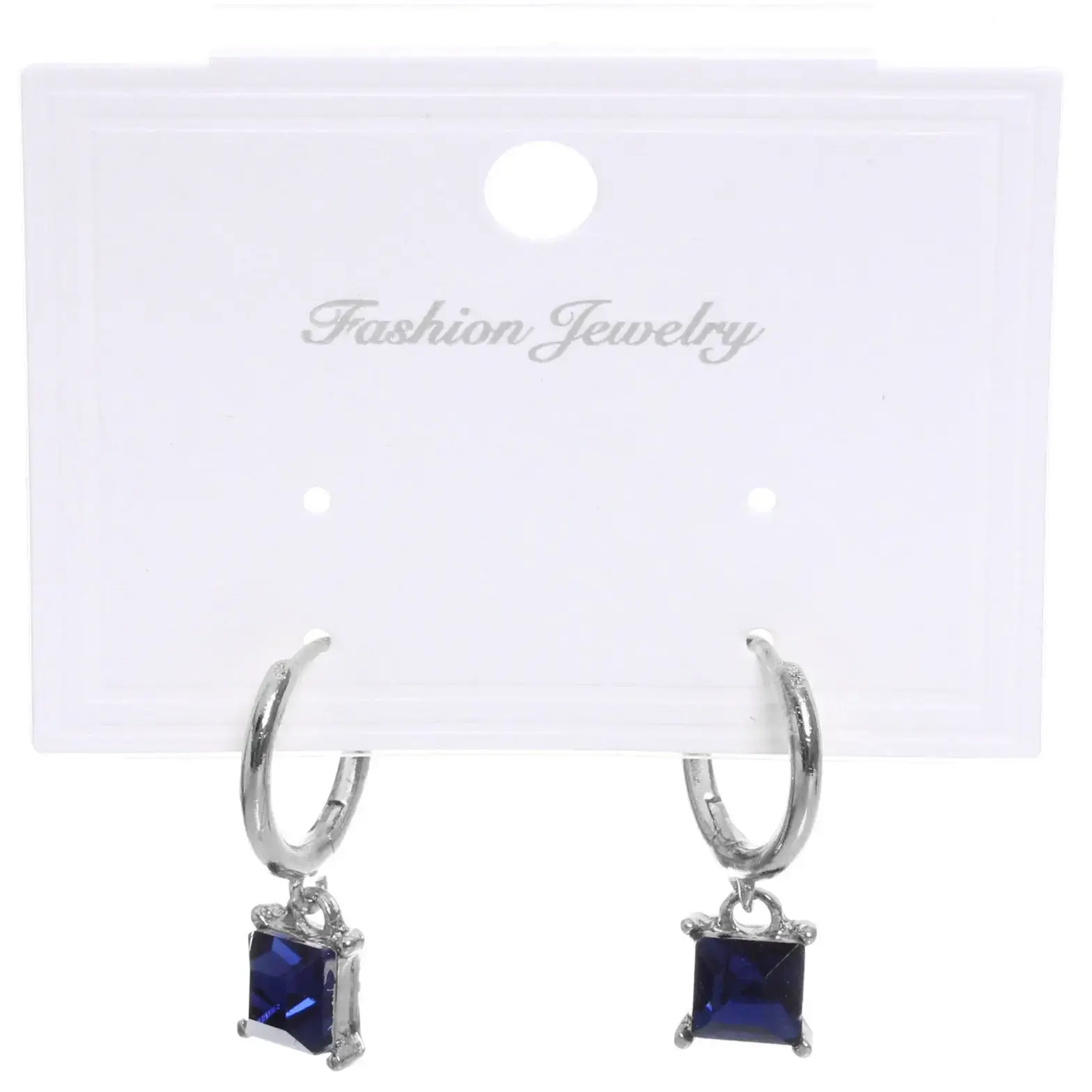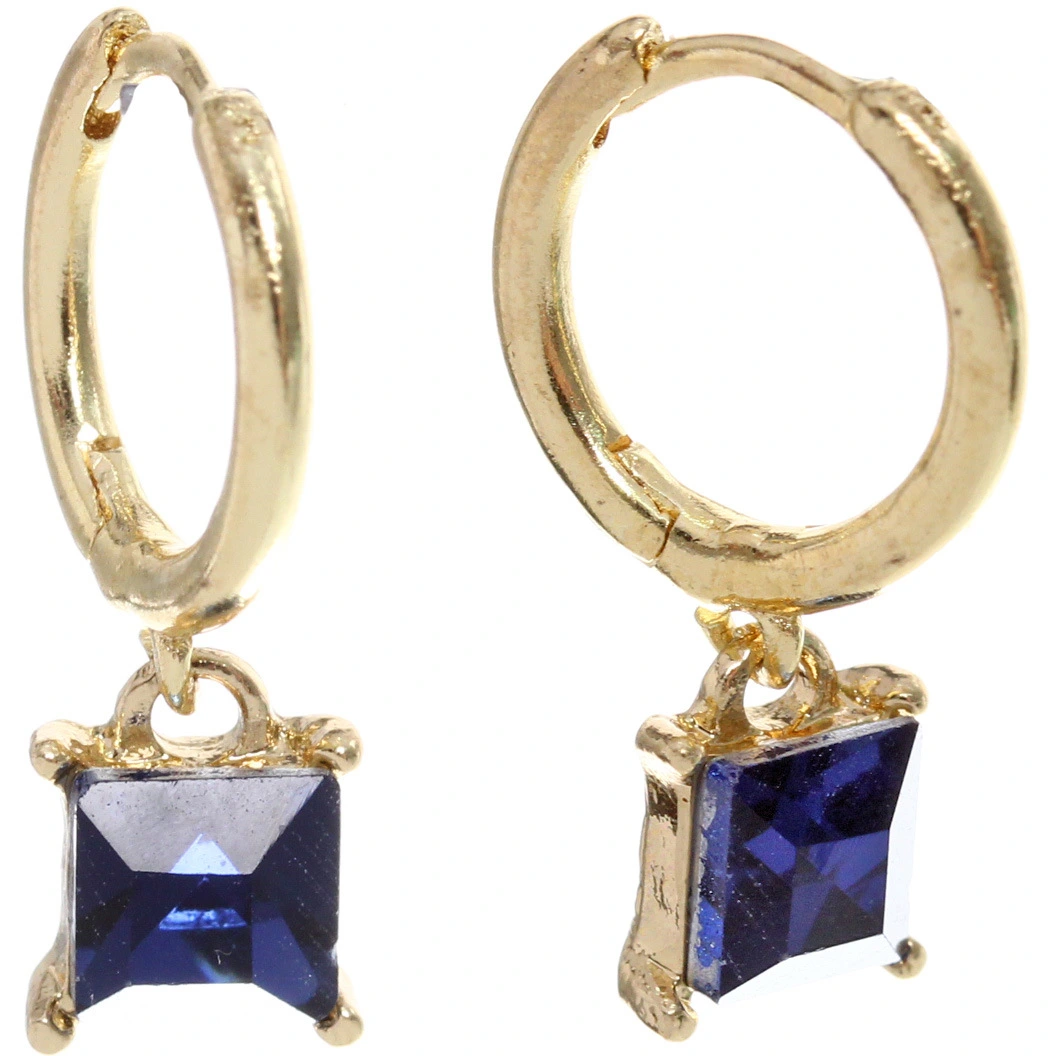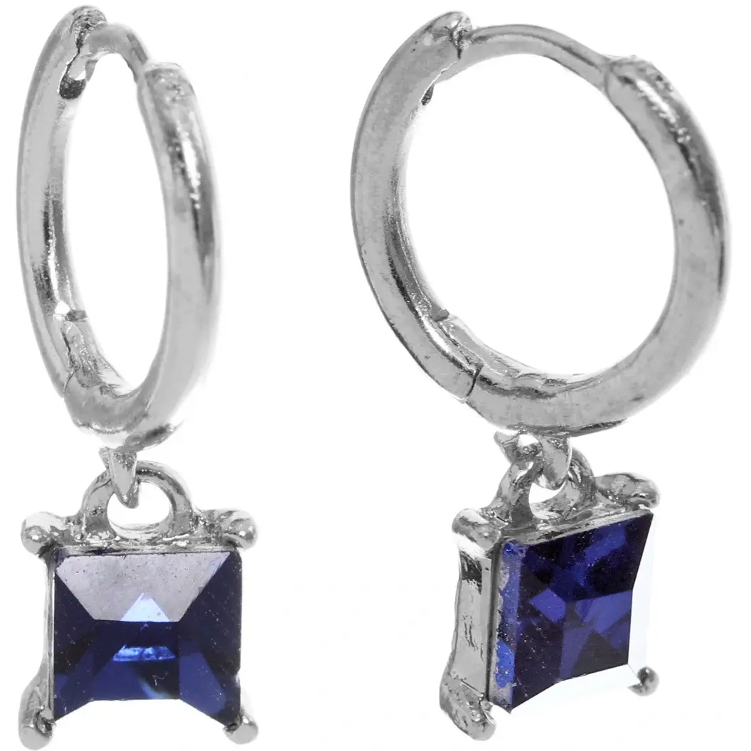 Серьги имеют форму колец с подвесками в виде квадратных камней темно-синего цвета, что делает их универсальными для повседневного и вечернего стиля. Они легко комбинируются с различными нарядами, подчеркивая вашу индивидуальность и вкус. Эти серьги подойдут как для молодых девушек, так и для женщин, ценящих стиль и качество.