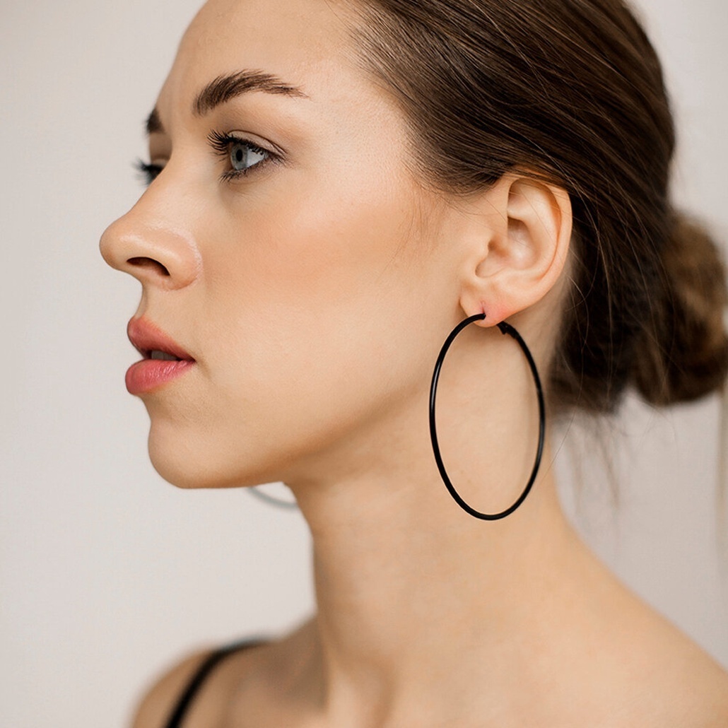 Крупные круглые серьги в насыщенном черном цвете станут идеальным дополнением как повседневного, так и вечернего лука. Универсальный дизайн подчеркнет индивидуальность и добавит нотку современности вашему стилю.