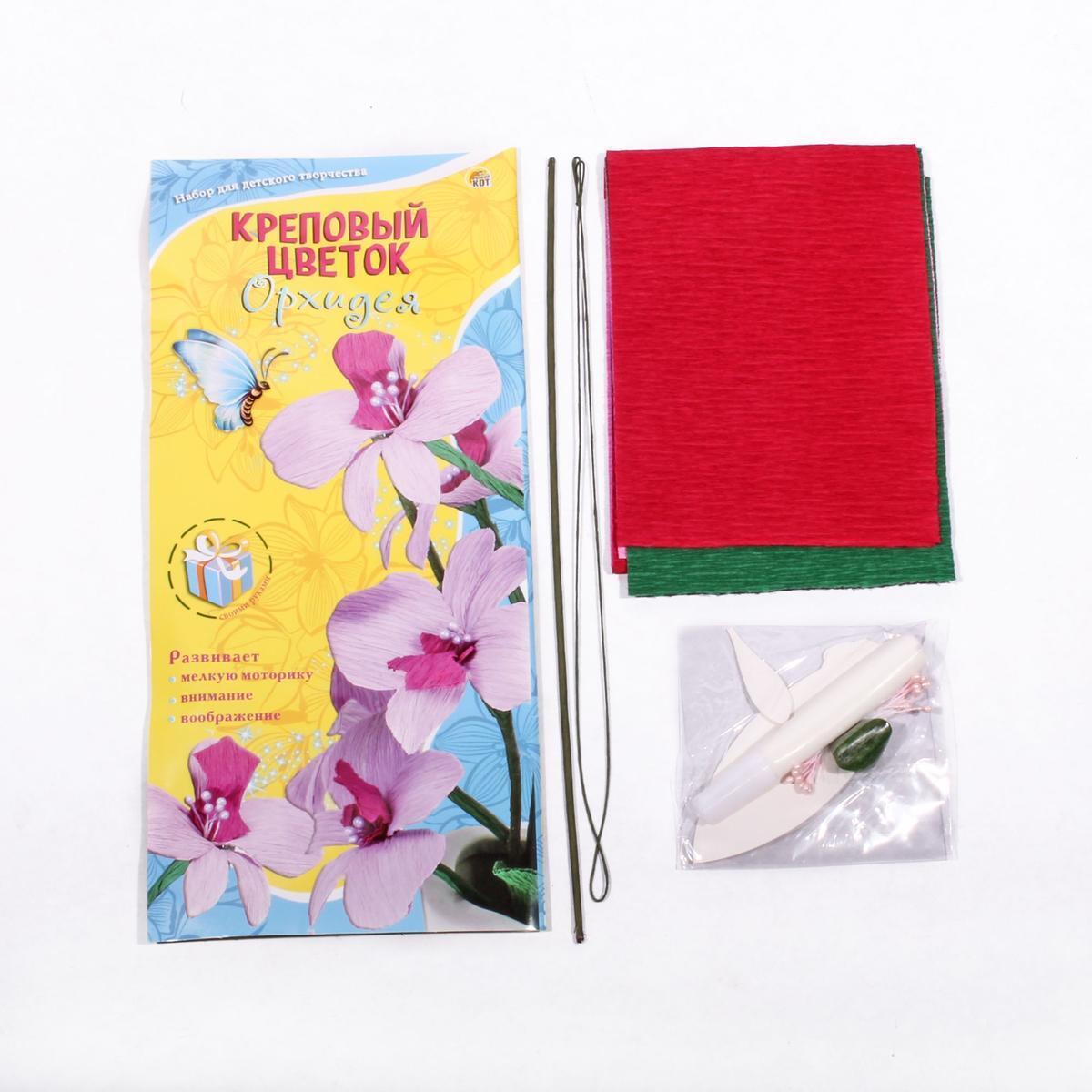 Набор для творчества Рыжий Кот "Креповый цветок Орхидея", сделай сам, бумага, проволока, от 3-х лет