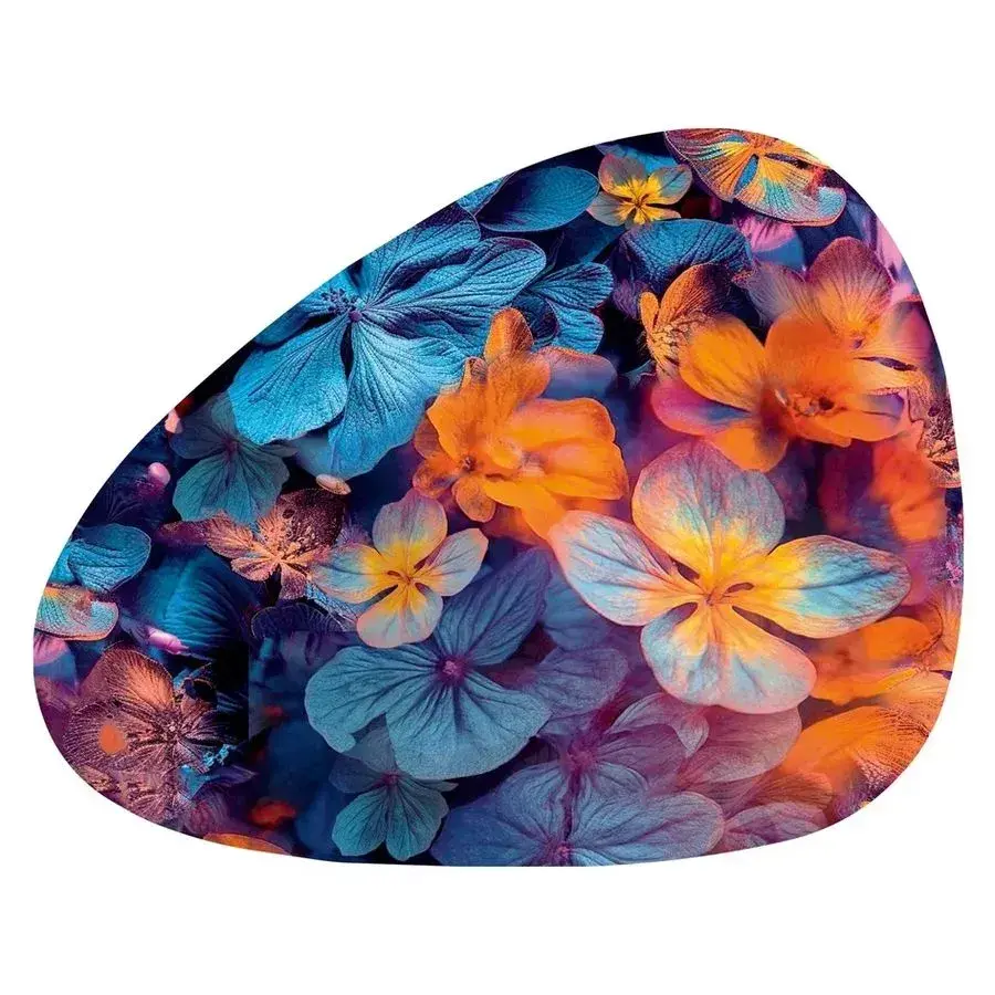 Эта салфетка капля длиной 45.5 см выполнена из глянцевого, легко моющегося материала и отлично подходит для украшения стола и защиты поверхности. Ее яркий цветочный дизайн с оттенками синего, голубого, оранжевого и желтого добавит красоты и уюта любой кухне или обеденному пространству.