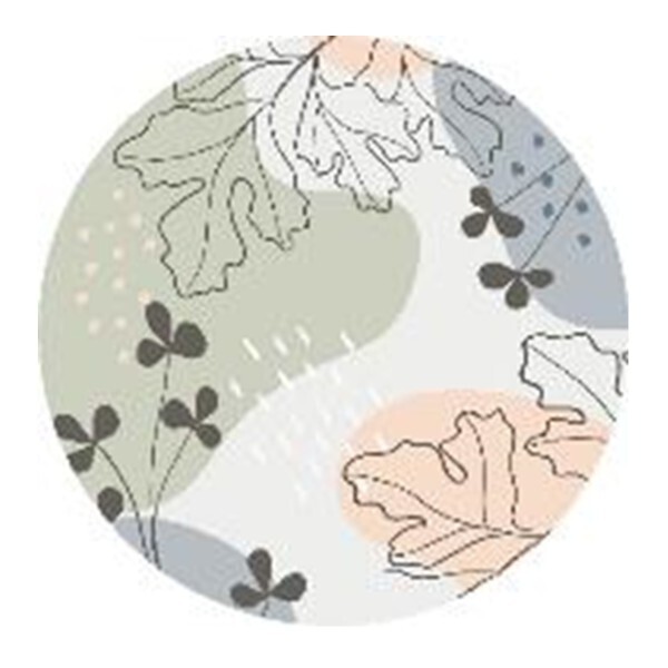 Рисунок: абстрактный растительный орнамент в пастельных тонах (включает светло-голубой, зеленый, нежно-розовый, серый и черный)