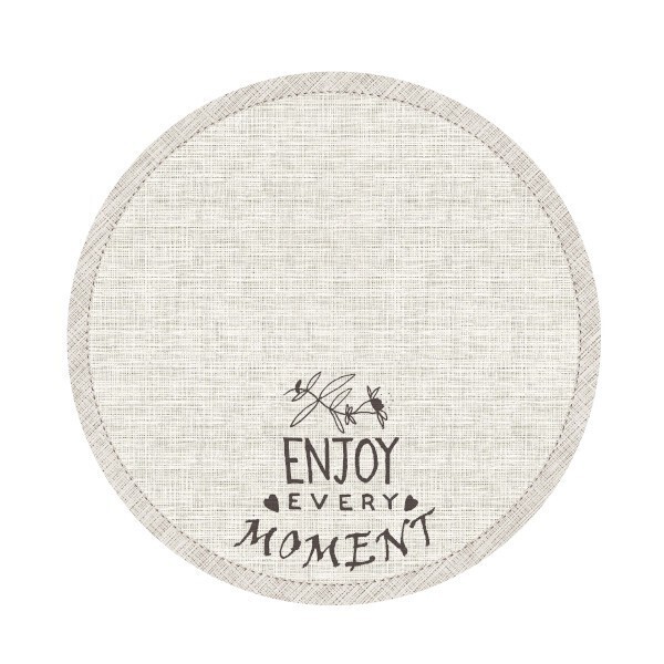 Сервировочная салфетка круглая 36см, цвет лен, дизайн "Enjoy every moment", пластик, бежевая