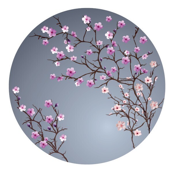 Сервировочная салфетка круглая 36 см, цветочный принт 'Сакура', влагостойкая