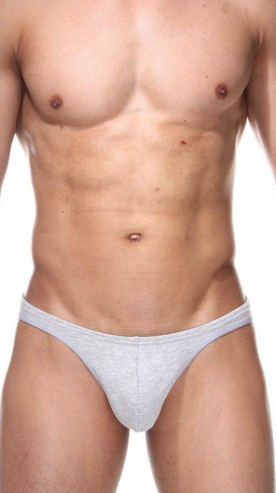 Трусы-тонги мужские, серая меланжевая ткань, 95% хлопок/5% эластан, размер M