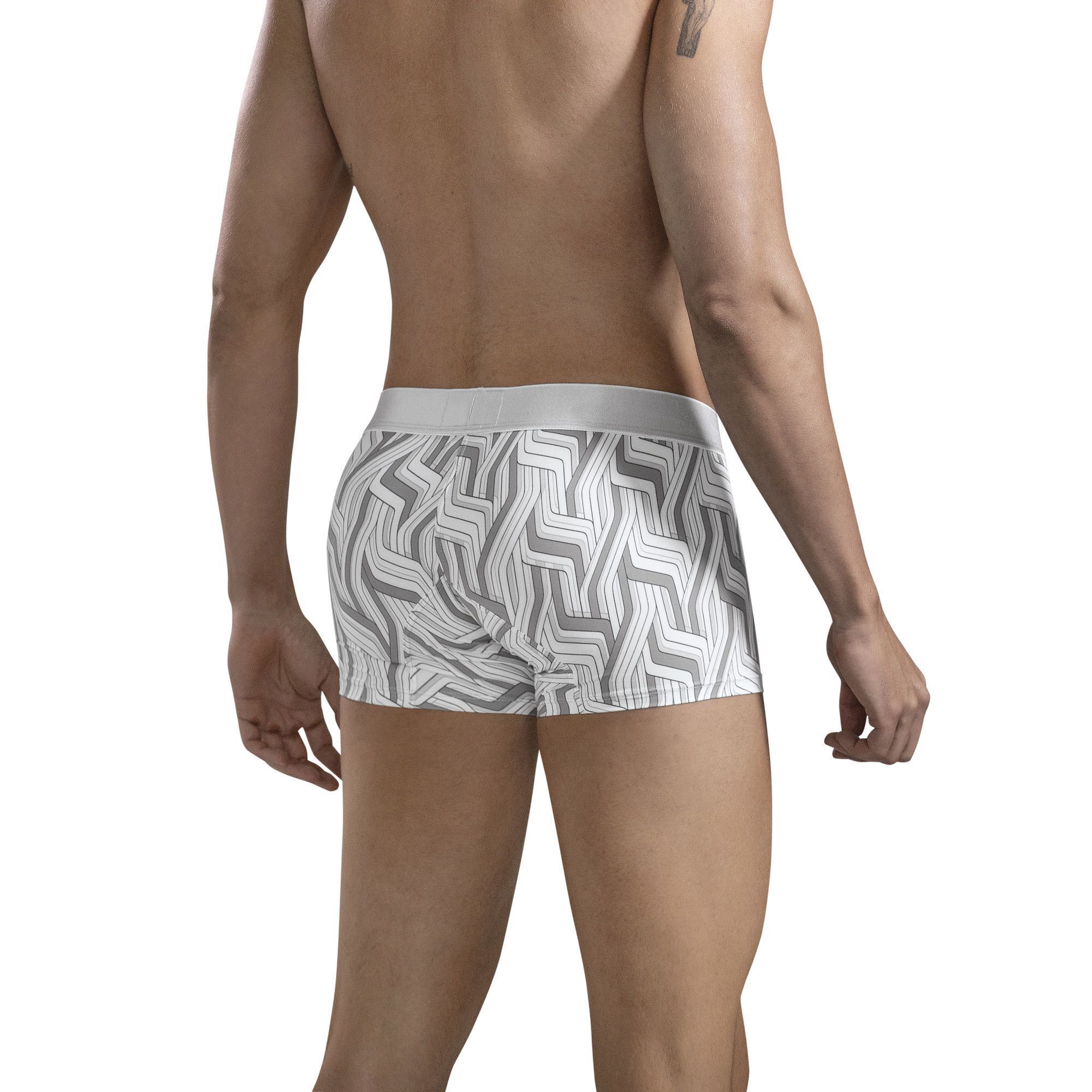 Серые трусы-хипсы с геометрическим принтом Lazos Trunks созданы для мужчин, которые ценят удобство и современный дизайн. Изделие идеально подходит для повседневного использования благодаря сочетанию мягкого материала и продуманного кроя.