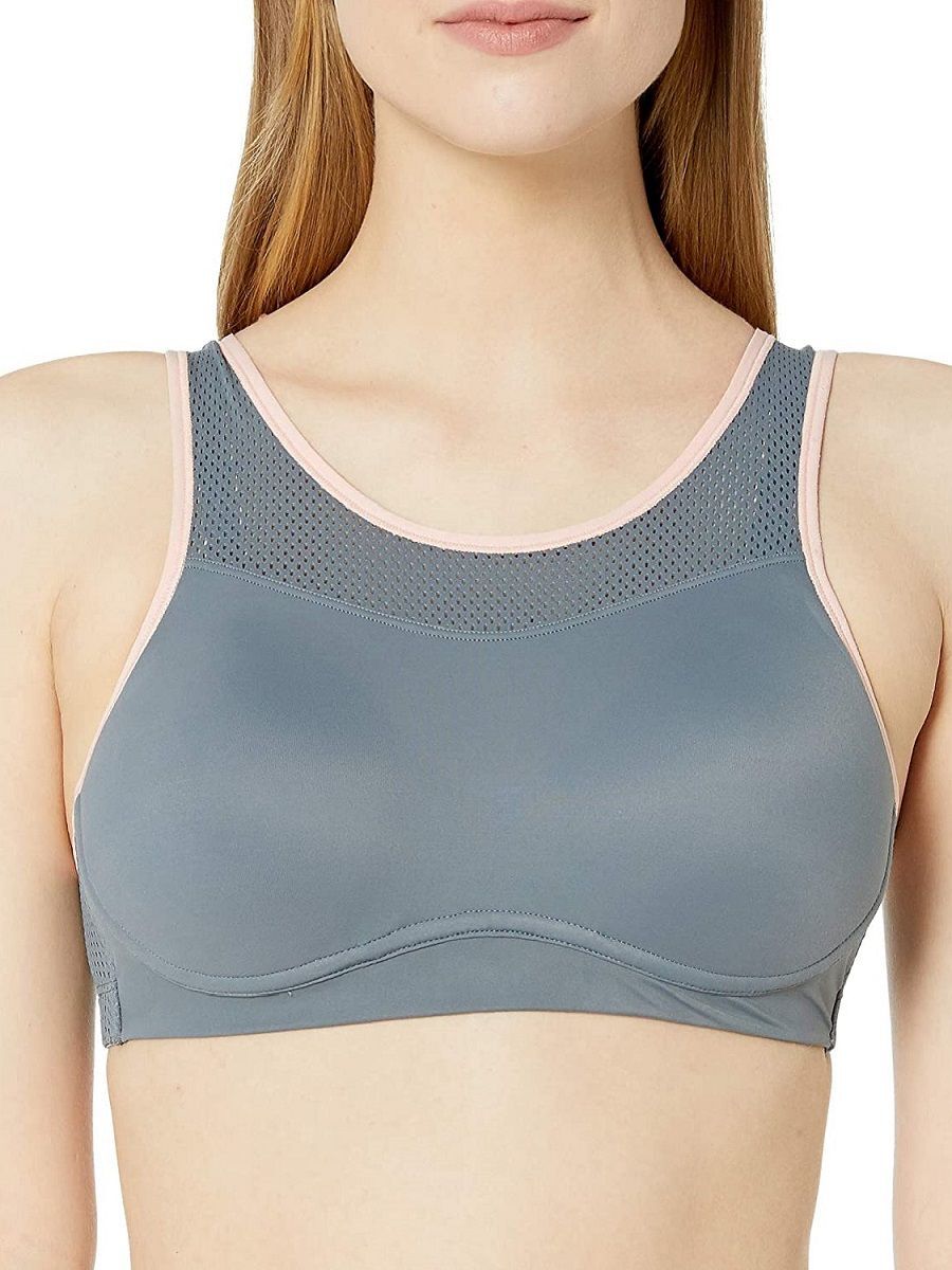 Спортивный бюстгальтер с сетчатыми вставками, серо-розовый, 80E, 82% нейлон, 18% эластан, поддержка и комфорт