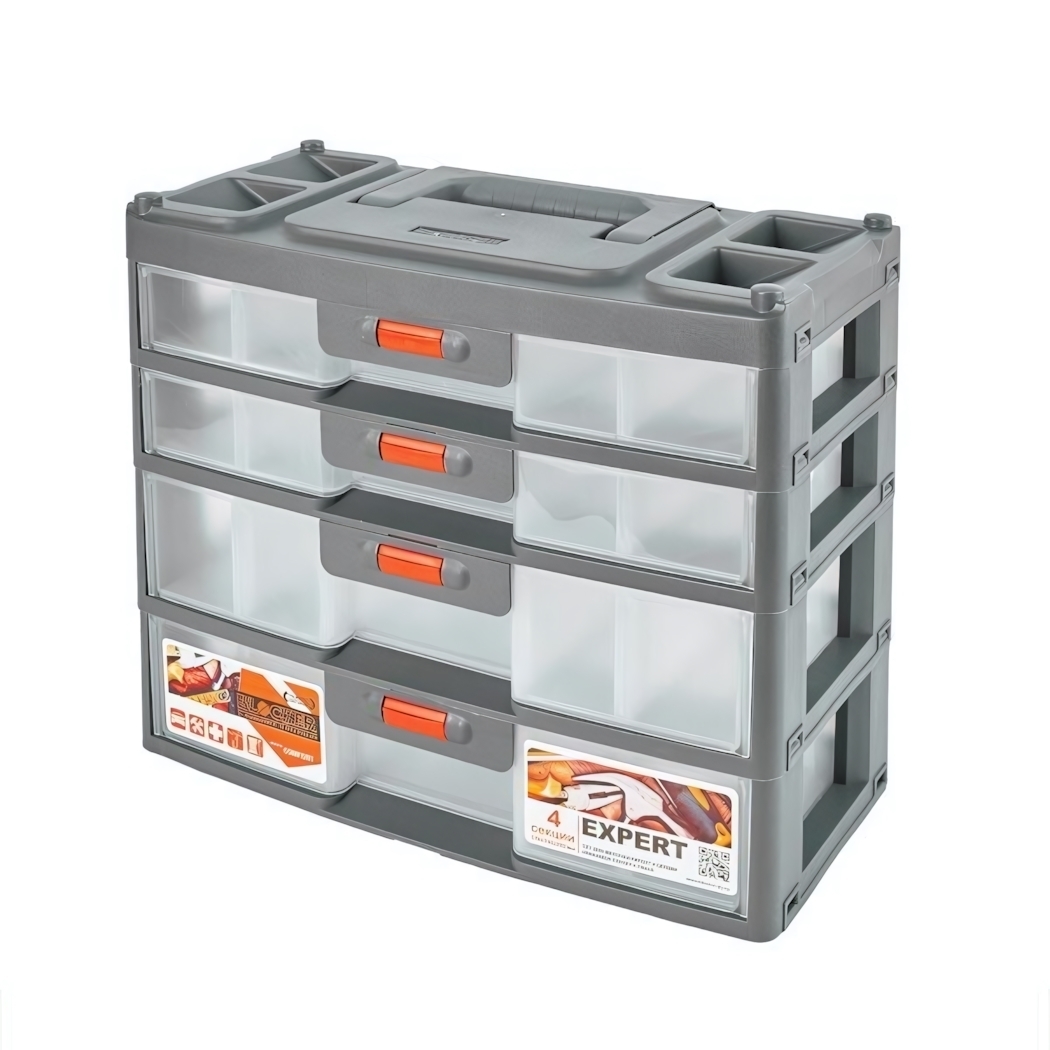 Выбирая органайзер Expert, вы получаете не только качественный продукт, но и практичное решение для хранения. Прозрачная передняя часть секций позволяет видеть содержимое в закрытом состоянии, что экономит ваше время при поиске нужных вещей. Крышка органайзера имеет выемки для временного хранения мелких деталей, что делает его еще более удобным в использовании.