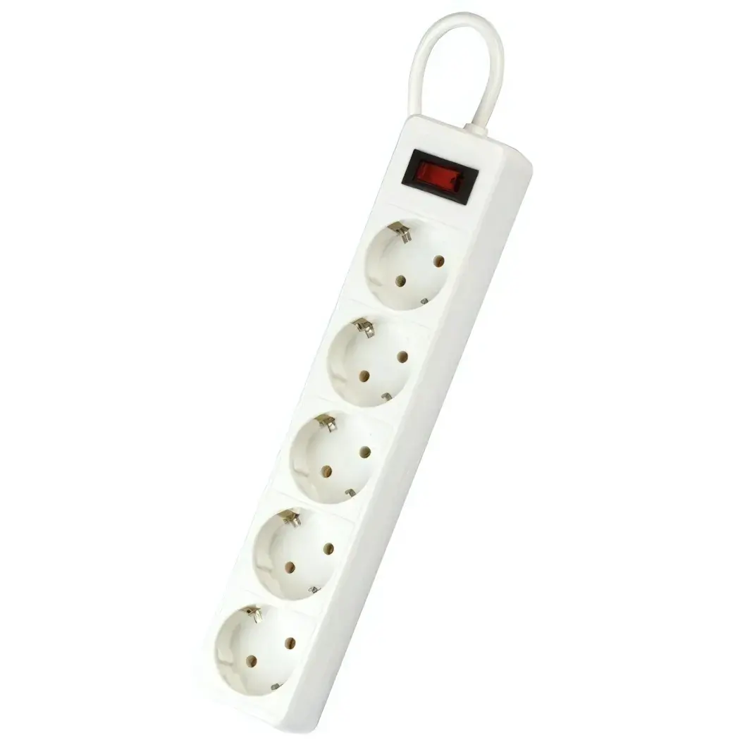 Сетевой фильтр оснащен 5 стандартными розетками, что позволяет подключать до пяти устройств одновременно. Максимальная нагрузка в 2200 Вт обеспечивает стабильную работу всех подключенных приборов. Удлинитель длиной 3 метра дает возможность разместить устройства на значительном расстоянии от источника питания, что особенно удобно в больших помещениях.