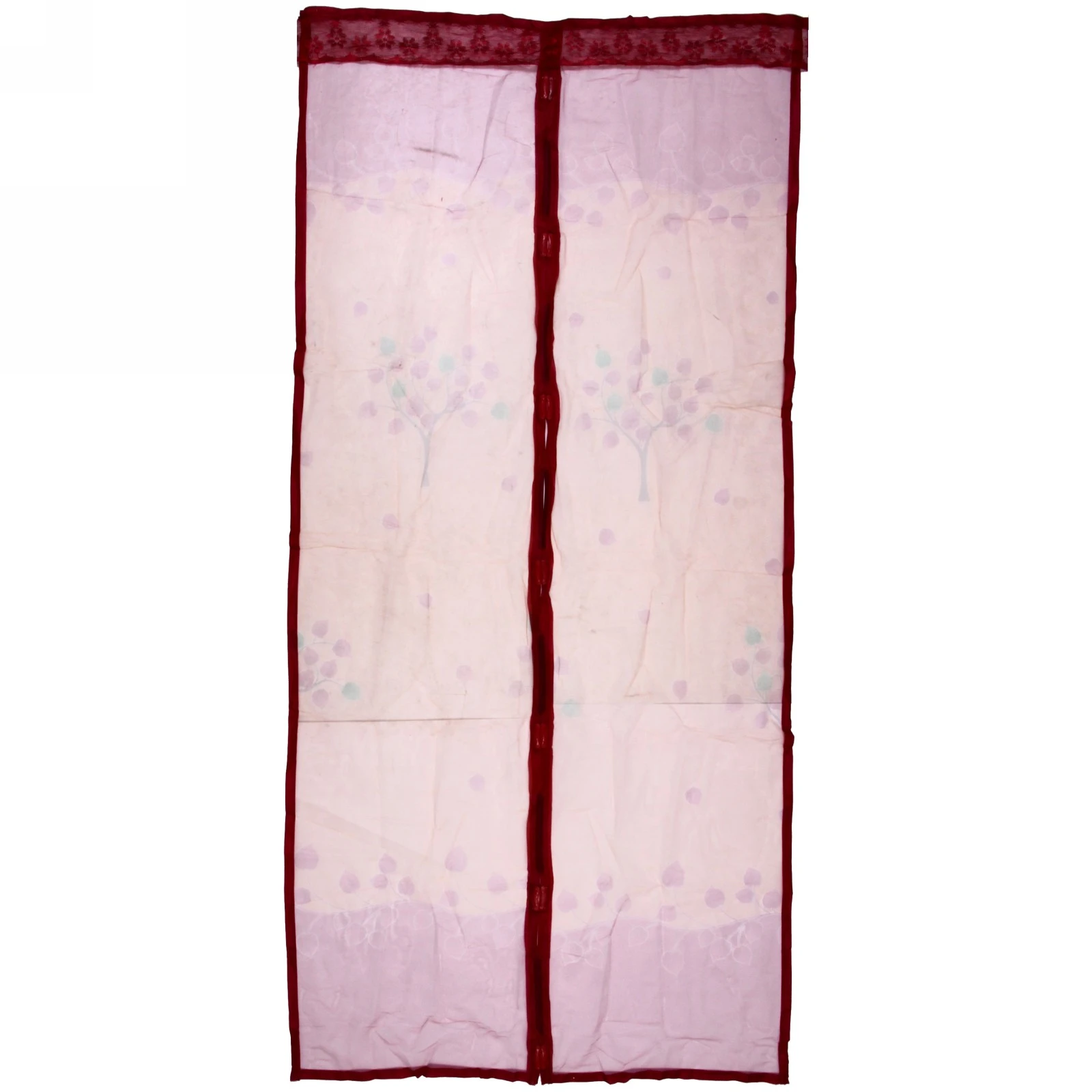 Размер сетки составляет 100x210 см, что позволяет использовать её на стандартных дверях. В комплект входят две москитные сетки размером 50x210 см, две магнитные полосы, три магнита, декоративная накладка и набор кнопок для крепления. Материалы, из которых изготовлена сетка, обеспечивают её легкость и прозрачность, что позволяет свету проходить, создавая уютную атмосферу в вашем доме.