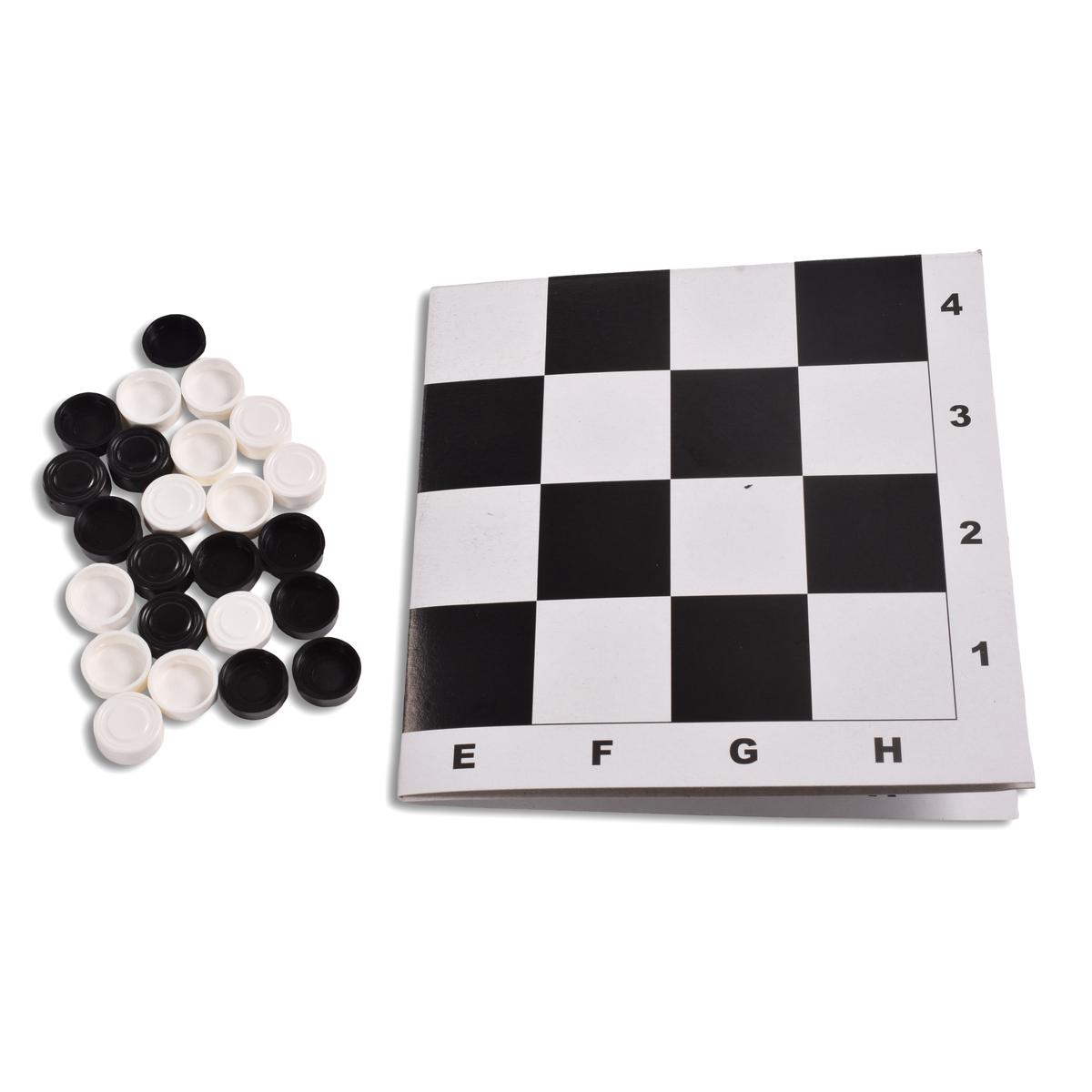 - Набор классических шашек — 24 штуки (12 белых и 12 черных);