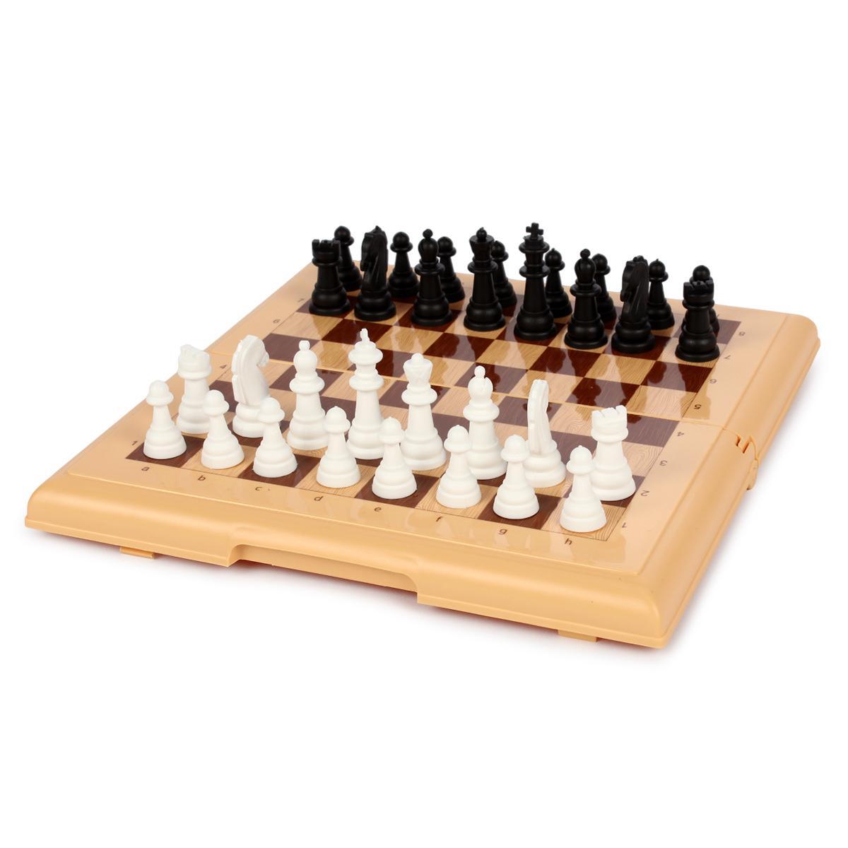 Шахматы в пластиковом кейсе бежевые, 32 фигуры, легкий вес, развивают логику