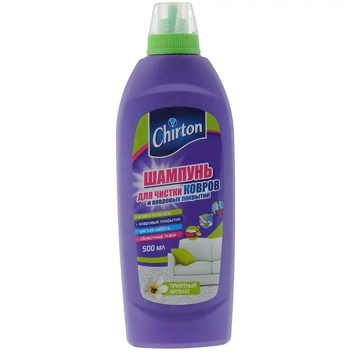 Объём флакона составляет 500 мл, что позволяет использовать шампунь длительное время. Удобный дозатор обеспечивает точное нанесение, а фиолетовый цвет упаковки с зелёными элементами делает его стильным дополнением к вашему дому. Не упустите возможность сделать ваш дом чище и уютнее с шампунем CHIRTON!