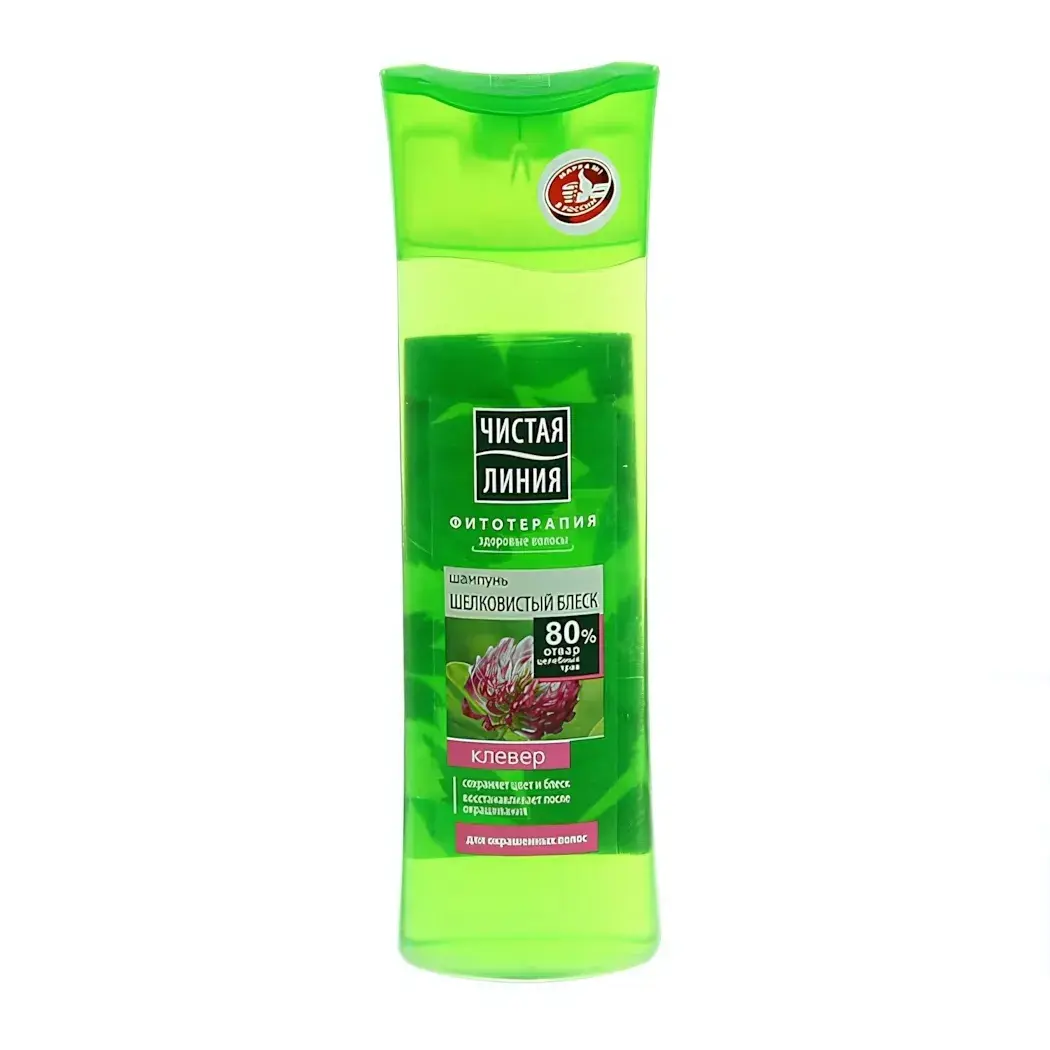 Подарите своим волосам шелковистый блеск и заботу с шампунем ЧИСТАЯ ЛИНИЯ. Этот уникальный продукт на основе 80% отвара трав, включая экстракт клевера, специально разработан для окрашенных волос, восстанавливая их после окрашивания и придавая здоровый вид. Шампунь не только очищает, но и ухаживает за волосами, делая их мягкими и блестящими.