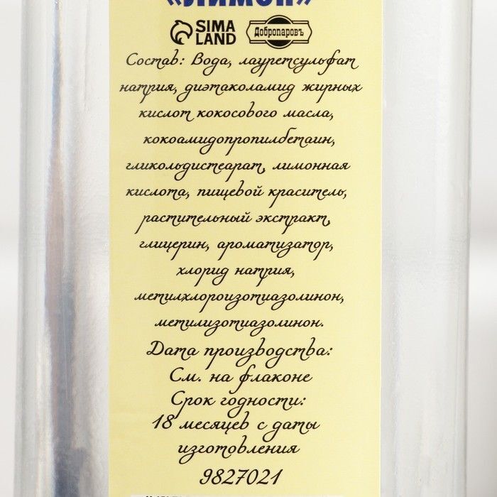 Объем флакона – 300 мл. Основные действующие компоненты: вода, лауретсульфат натрия, ароматизатор. Прозрачная цилиндрическая бутылка с яркой желтой этикеткой гармонично впишется в интерьер ванной комнаты и станет стильным акцентом на вашей полке.