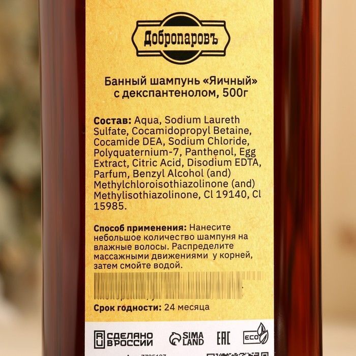 Объем упаковки составляет 500 гр, что обеспечивает длительное использование. Шампунь упакован в удобный флакон, который легко держать в руке. Не упустите возможность сделать ваши волосы здоровыми и красивыми с яичным шампунем с декспантенолом!