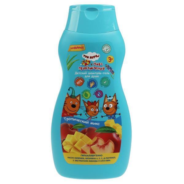 Шампунь-гель детский «Три кота. Тропический микс» 300 мл, гипоаллергенный, экстракты лаванды и алоэ вера