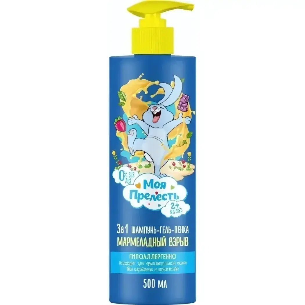 Шампунь-гель-пенка "МОЯ ПРЕЛЕСТЬ" 3 в 1 идеально подходит для ежедневного использования. Он легко наносится и смывается, превращая процесс мытья волос в увлекательное занятие. Продукт подходит для детей всех возрастов и может использоваться как в ванной, так и в душе.
