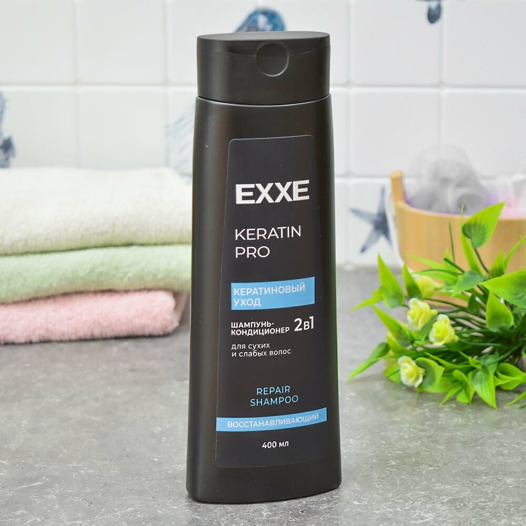 Шампунь-кондиционер 2в1 «Keratin Pro» для сухих волос, восстановление, 400мл, черный флакон