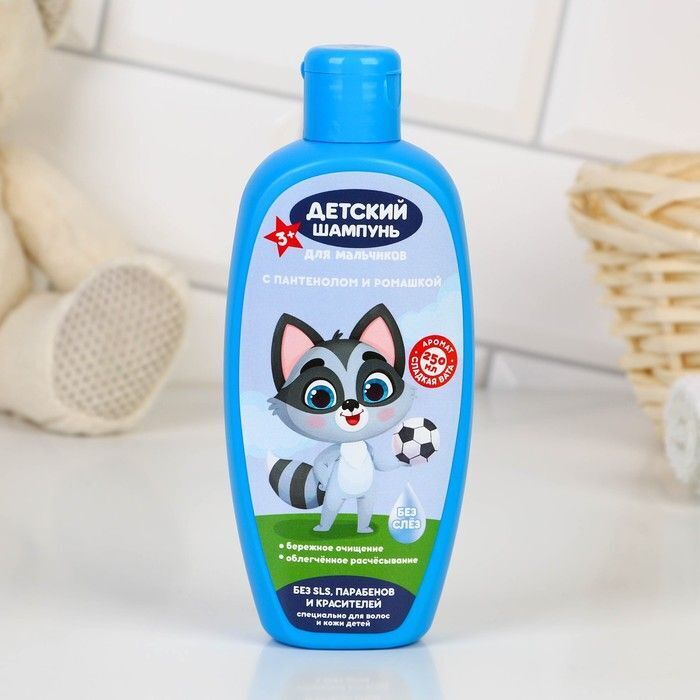 Шампунь подходит для детей от 3 лет и идеально подходит для ежедневного использования. Нанесите необходимое количество на влажные волосы, взбейте до образования пены и тщательно смойте водой. Удобная упаковка с закруглёнными углами и плоским дном позволяет легко держать флакон в руках, а яркий голубой цвет и милый рисунок енота сделают его любимым у вашего малыша.