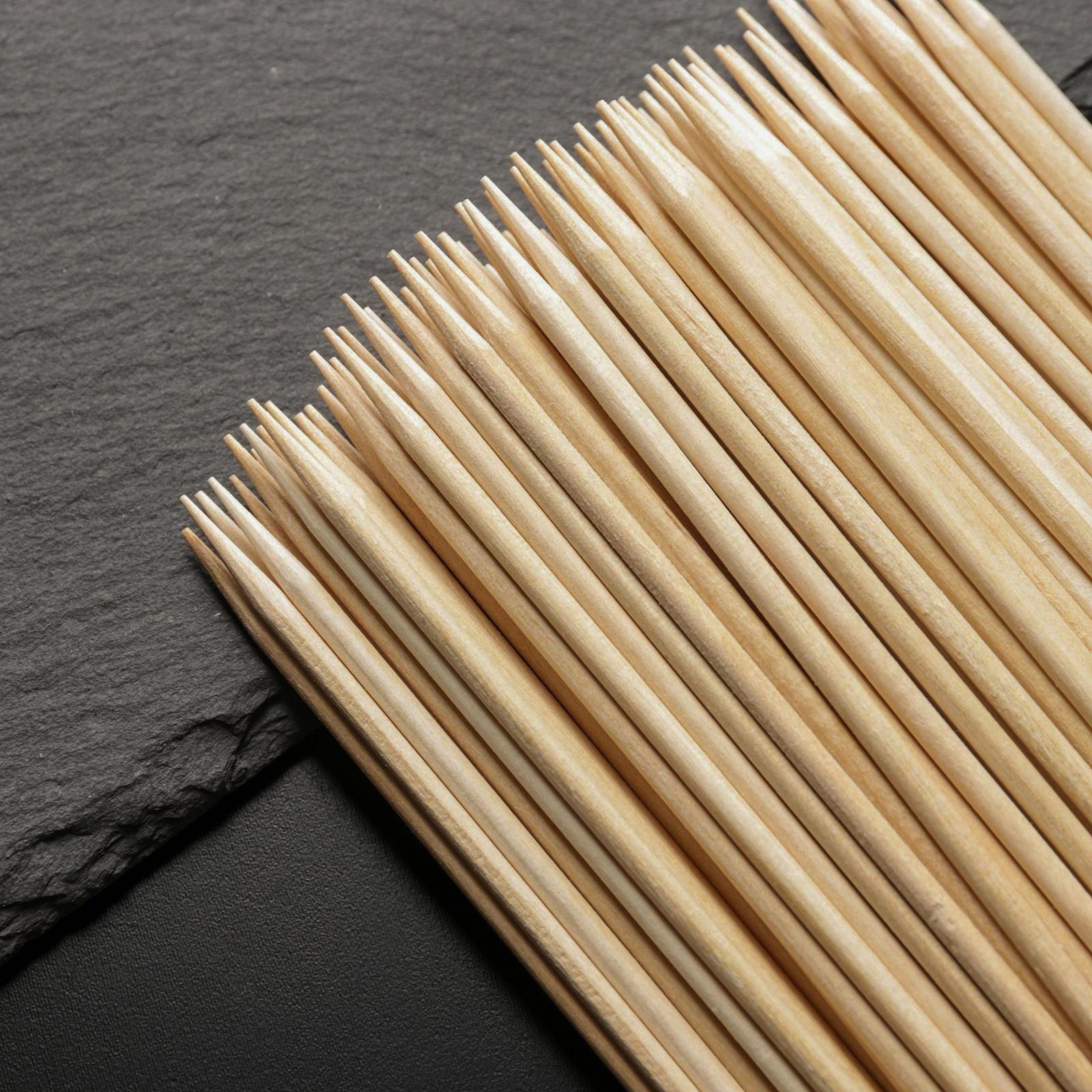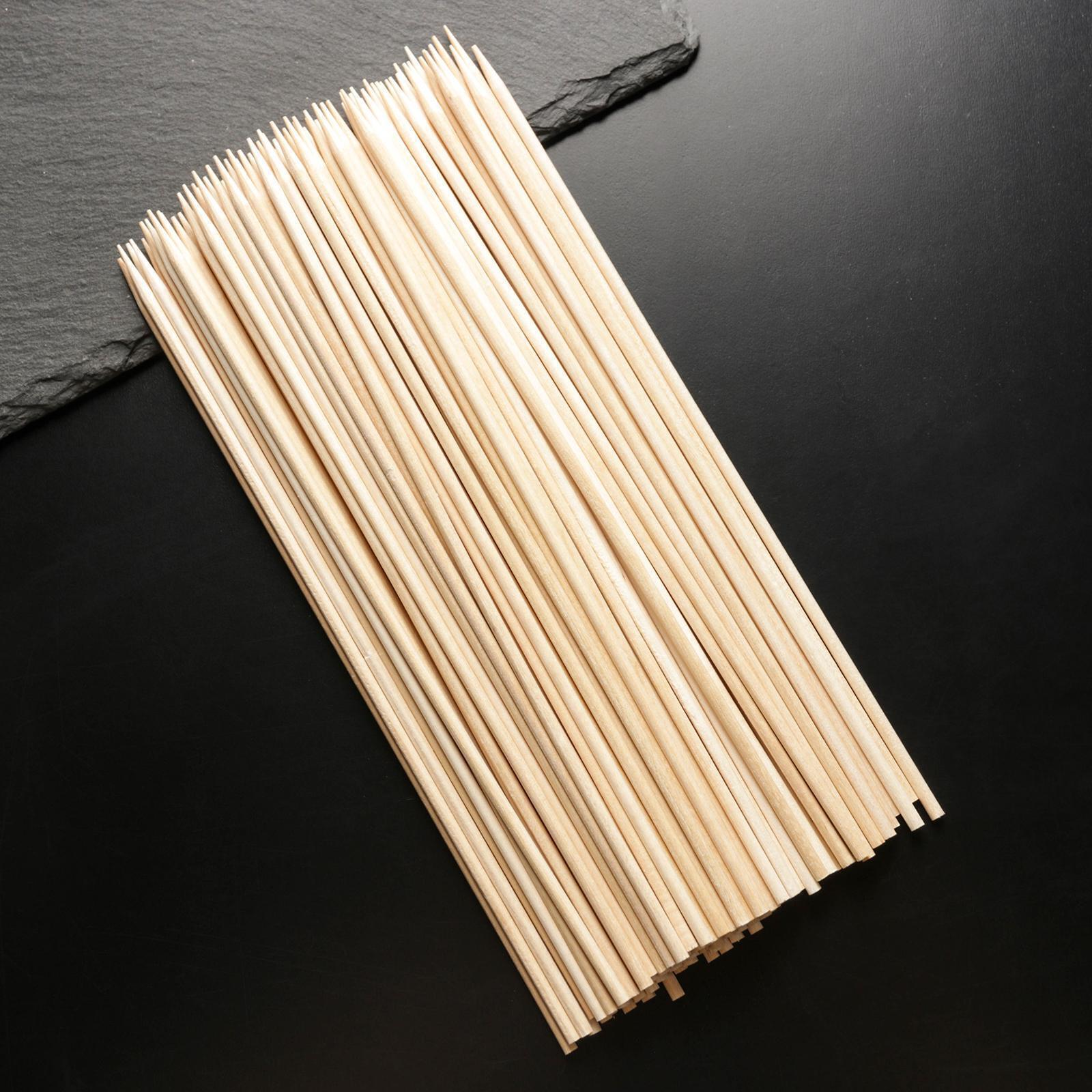 Шампуры имеют длину 20 см и выполнены из качественного дерева. Их бежевый цвет и гладкая поверхность делают их не только функциональными, но и эстетически приятными. Упаковка содержит 100 штук, что позволяет вам готовить для большой компании без лишних затрат.