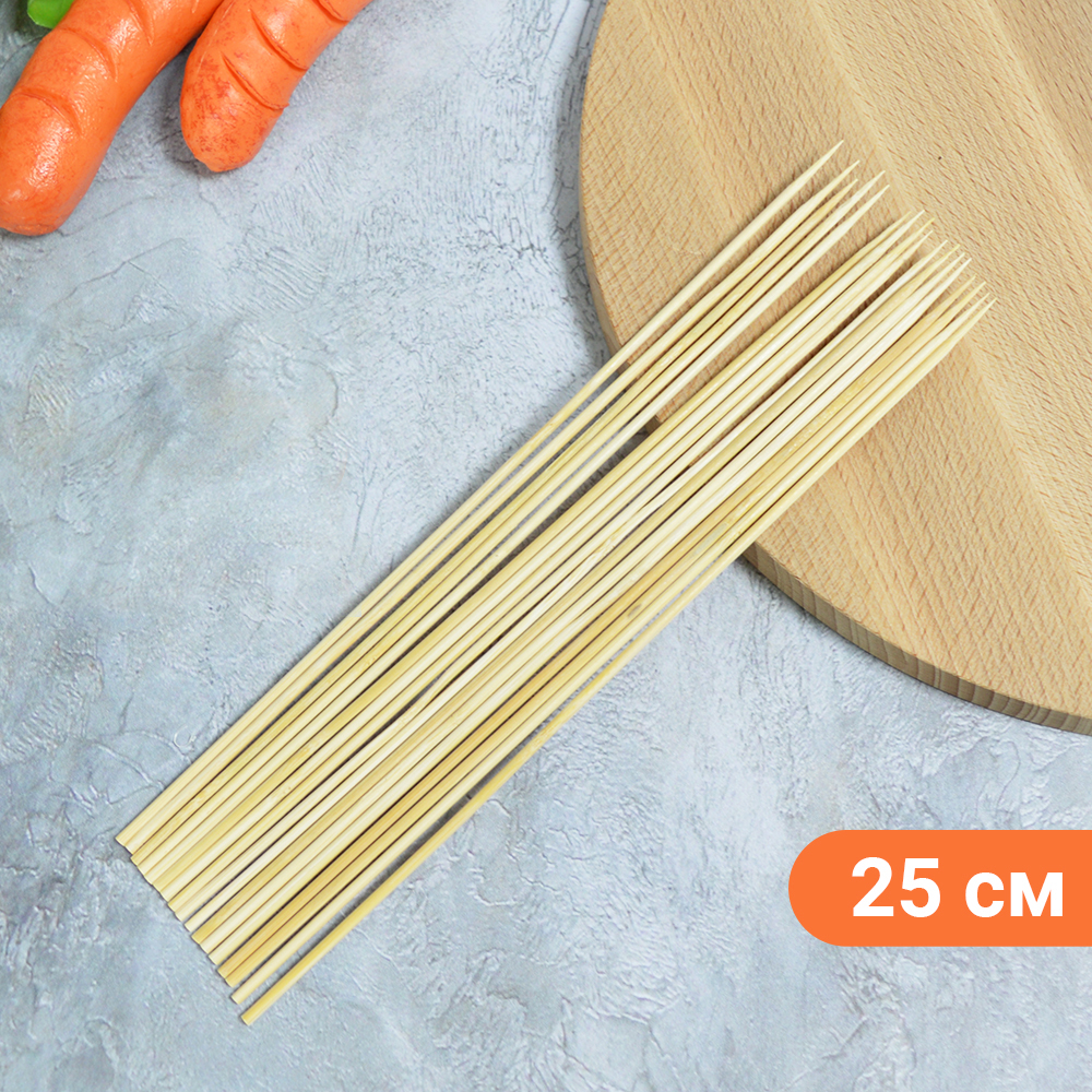 Шампуры бамбуковые 25см*3мм предназначены для приготовления мини-шашлычков из мяса, птицы, рыбы, овощей, а также для создания канапе. Длина - 25 см. В упаковке 90 шт.