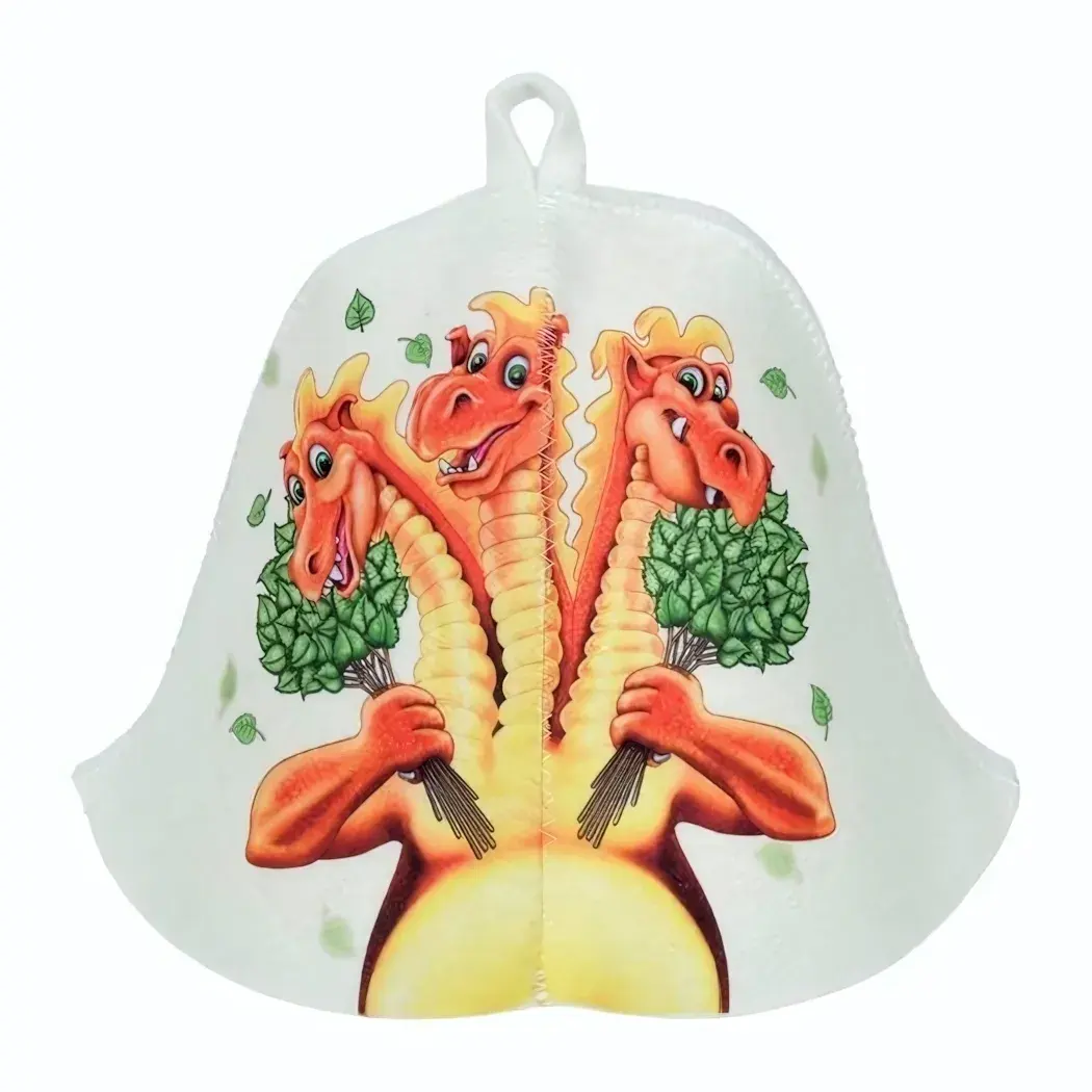 Выбирая шапку «Змей Горыныч», вы получаете не только защиту от высокой температуры, но и стильный аксессуар, который станет отличным дополнением к вашему банному ритуалу. Войлок сохраняет форму и не деформируется, что гарантирует долгий срок службы изделия. Яркий и оригинальный дизайн с драконами делает шапку привлекательной и уникальной.