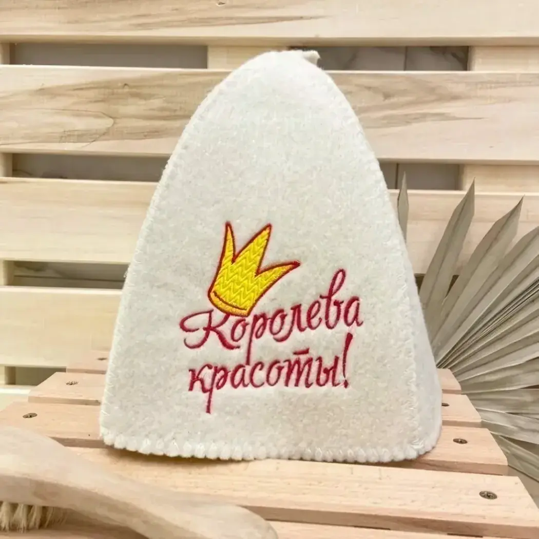Представляем классическую банную шапку из мягкого фетра с элегантной вышивкой 'Королева красоты'. Этот аксессуар не только украсит ваш образ, но и обеспечит надежную защиту головы от перегрева в парилке.