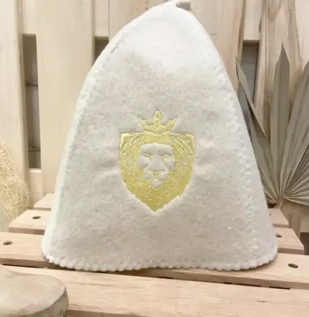 Шапка банная с вышивкой "Лев", белая, фетр, защита от теплового удара