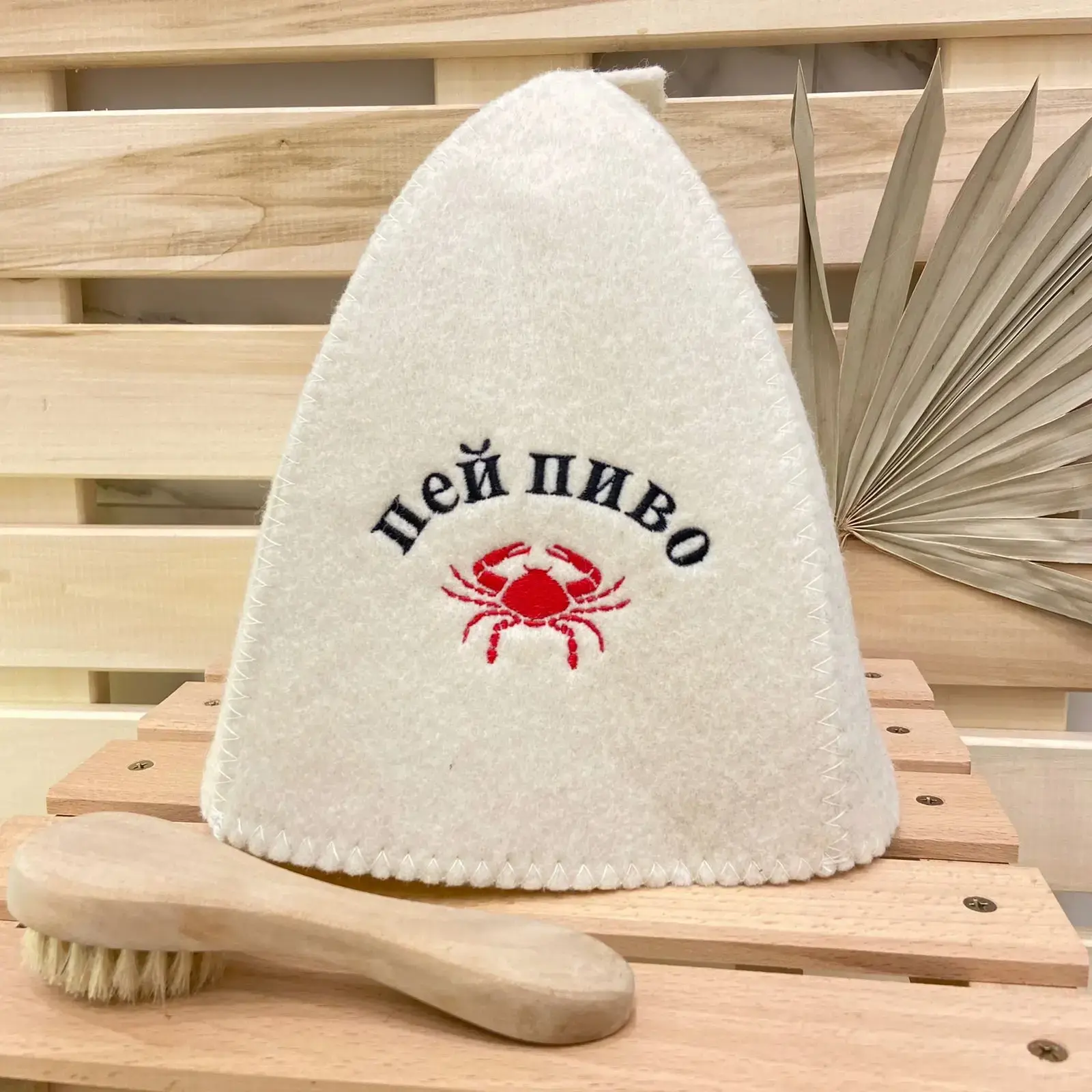 Шапка идеально подходит для использования в сауне или бане. Она защищает голову от перегрева, позволяя вам сосредоточиться на расслаблении и восстановлении сил. Благодаря своему оригинальному дизайну с вышивкой «Пей пиво» и изображением краба, она станет не только практичным, но и стильным элементом вашего отдыха.